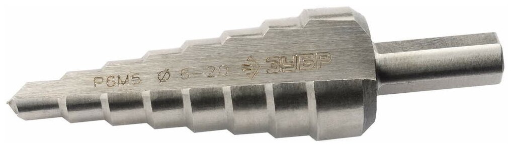 Сверло ступенчатое Зубр 6-20мм, HSS-R, быстрорежущая сталь М2(S6-5-2) Р6М5, класс А 8 ступеней