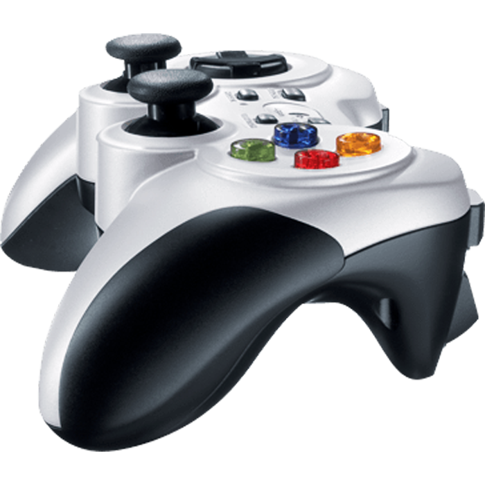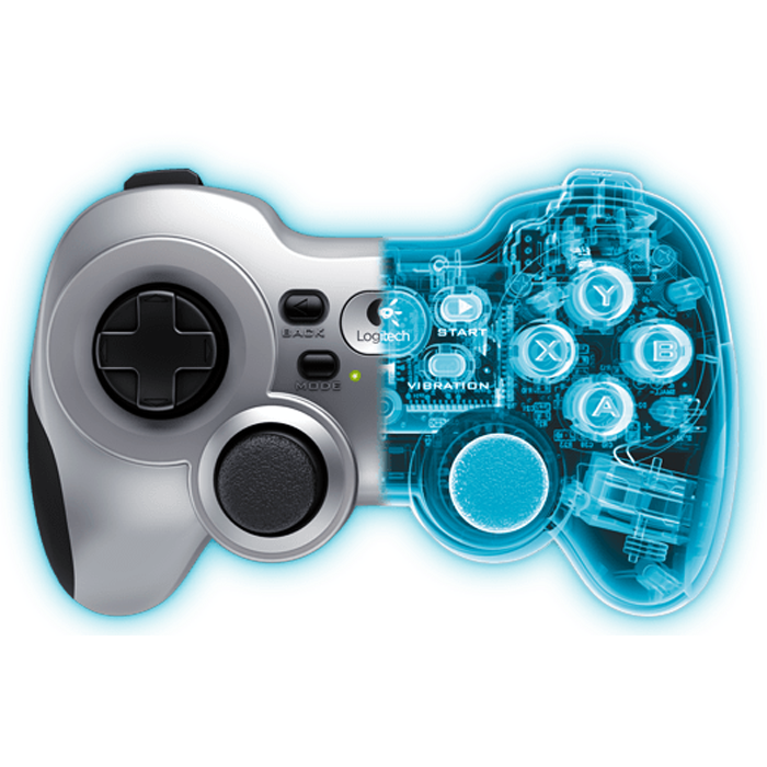 Logitech - это очередной замечательный контроллер от хорошо знакомой всем геймерам мира фирмы Logitech. Устройство имеет классическую форму и дизайн. Корпус выполнен из серебристого пластика с приятной фактурой и имеет резиновые накладки, которые исключают его скольжений и предотвращают усталость рук при длительном использовании. Подключение к персональному компьютеру осуществляется при помощи миниприемника, который вставляется в USB разъем. За беспроводную связь и передачу данных отвечает встроенный Bluetooth модуль, обеспечивающий надежность соединения в радиусе 10 метров. Управление осуществляется при помощи 10 кнопок и двух аналоговых манипуляторов с достаточно мощными вибромоторами. Питание геймпада происходит при помощи двух батареек типа АА, которых хватает на длительное время эксплуатации. Используя Logitech вы сможете полностью погрузится в реалистичную атмосферу чудесного мира компьютерных игр.