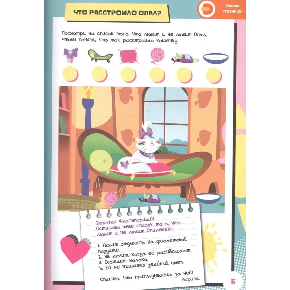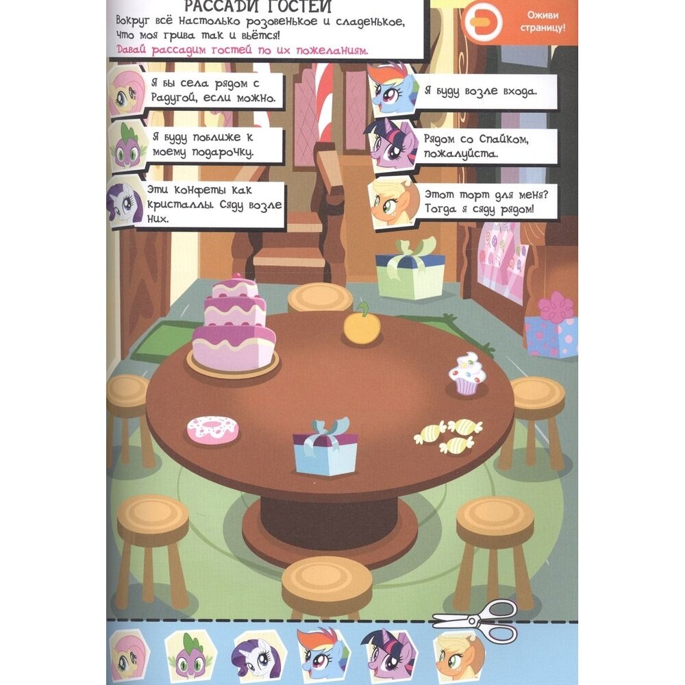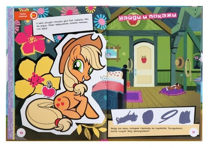Перед тобой целая копилка интересностей! Чего только пони для тебя ни приготовили! Научись устраивать крутые вечеринки вместе с Пинки Пай. Освой секреты успешной учёбы с Сумеречной Искоркой. Развей чувство стиля с Рарити. Посоревнуйся с Радугой Дэш. Подружись с животными вместе с Флаттершай. Узнай все хитрости сбора урожая с Эпплджек. Побывай в гостях у каждой из них, располагайся, будь как дома! Для детей от 3-х лет.