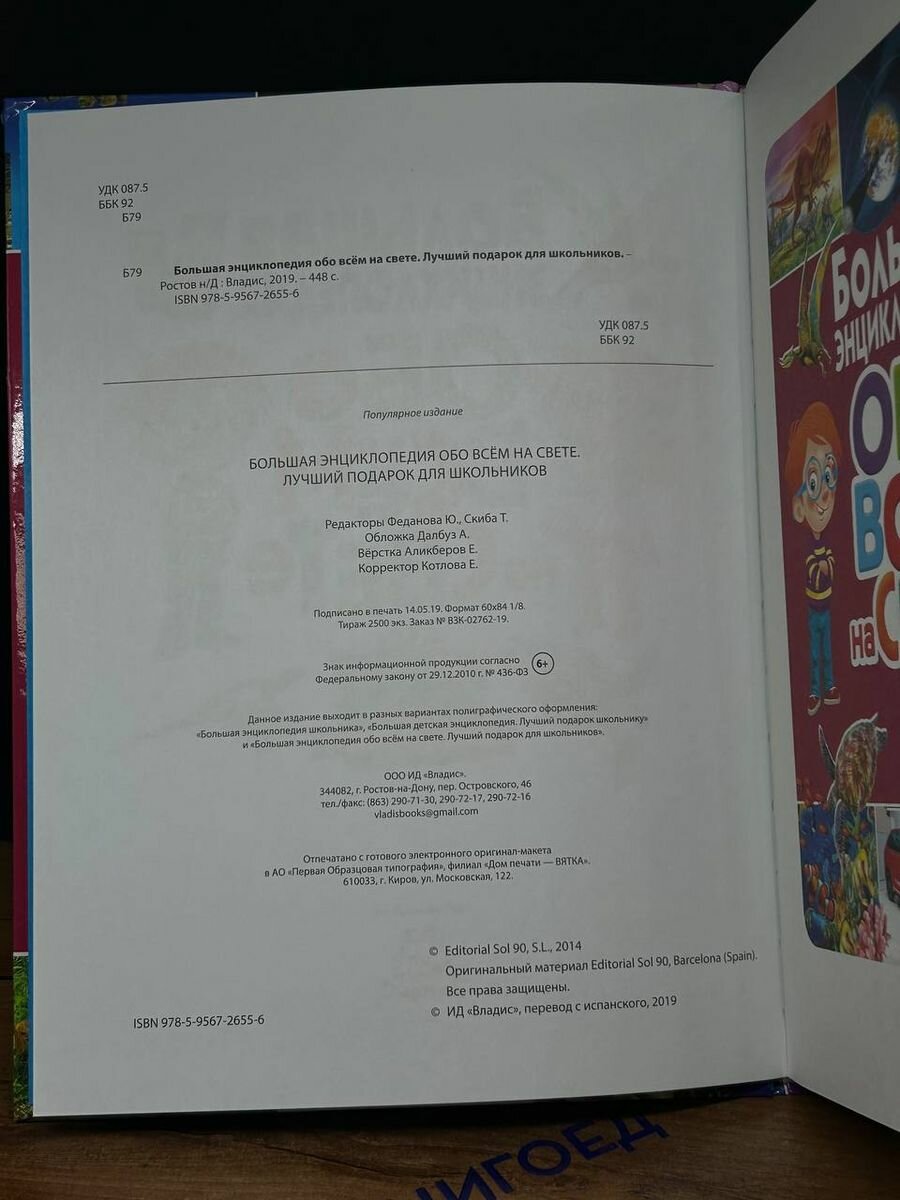 Сервис сравнения цен СкидкаГИД предлагает сравнить цены на товар «Книга: Большая энциклопедия обо всем на свете. Лучший подарок для школьников (Феданова Ю., Скиба Т. (ред.)); Владис, 2019»
