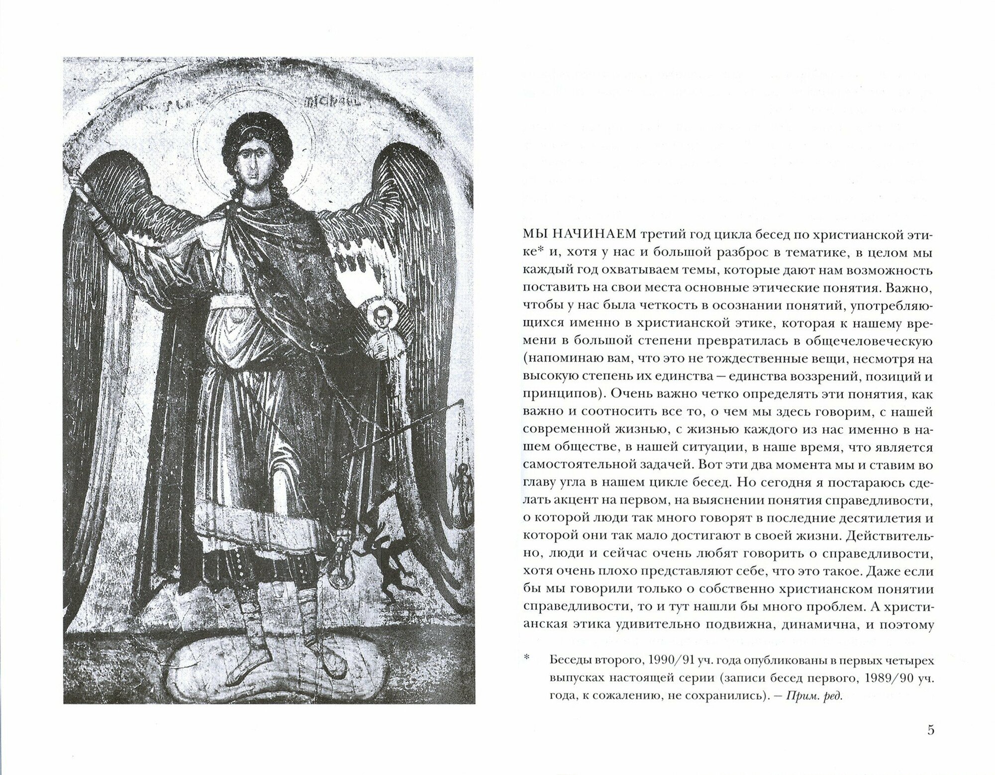Беседы, которые автор проводил в 1990-1992гг. - в качестве добавления к огласительным беседам, представляют собой благовествовательный жанр, любимый святыми отцами и учителями Церкви в "классические" святоотеческие столетия (III-IX вв.). Он был почти забыт в новое время. Жанр беседы отличается от проповедей или писем духовным чадам тем, что это прежде всего устный жанр: речь беседы течет в стилистике живого диалога со слушателями. В беседах воспроизведены вопросы слушателей и ответы, так что и читатель может представить себе эту аудиторию, узнать о проблемах, волновавших ее в тот момент. В настоящий сборник вошли беседы "Что такое справедливость", "Несвятая "святая ложь"" и "Усилие и насилие".