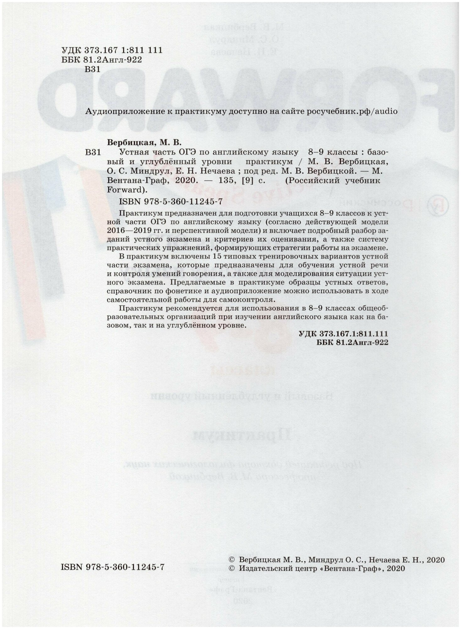 Устная часть ОГЭ по английскому языку. 8-9 классы. Практикум (Вербицкая Мария Валерьевна, Миндрул Ольга Сергеевна, Нечаева Екатерина Николаевна); Просвещение, 2020