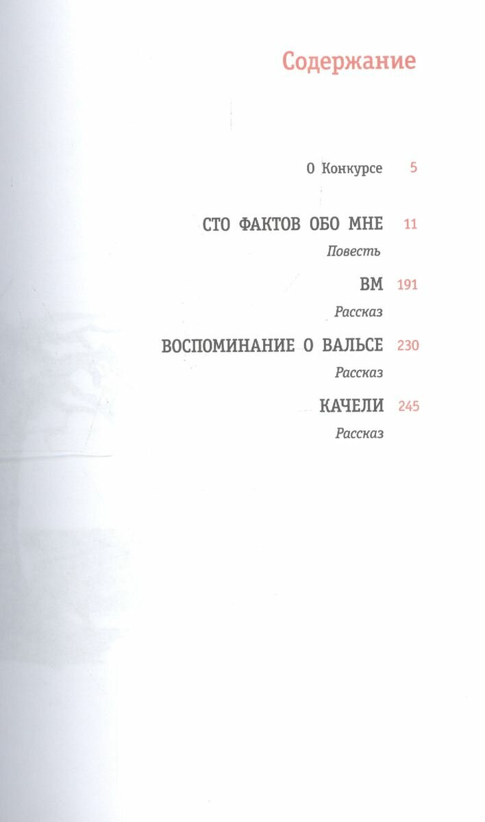 В книге повесть и два рассказа. Кто-то из друзей в соцсетях стал постить «Сто фактов о себе» и наш герой решил попробовать свои силы в этой игре, но писал более подробно. Получилась повесть. Когда ребенок живет в неполной семье и ничего не знает об отсутствующем родителе, он начинает свои расследования. И много всего, что встречается в жизни старшеклассника. ВМ. Поначалу, казалось бы, история первой любви Оли и Глеба, и вдруг такая неожиданная развязка. ВМ — вино мертвых. Качели. Первая влюбленность девочки во взрослого человека. Об этой любви никто не знал и не догадывался. Лишь томилось сердце Саши. Дом человека, которого она любила, опустел. И только детские качели тоскливо висят на дереве в саду.