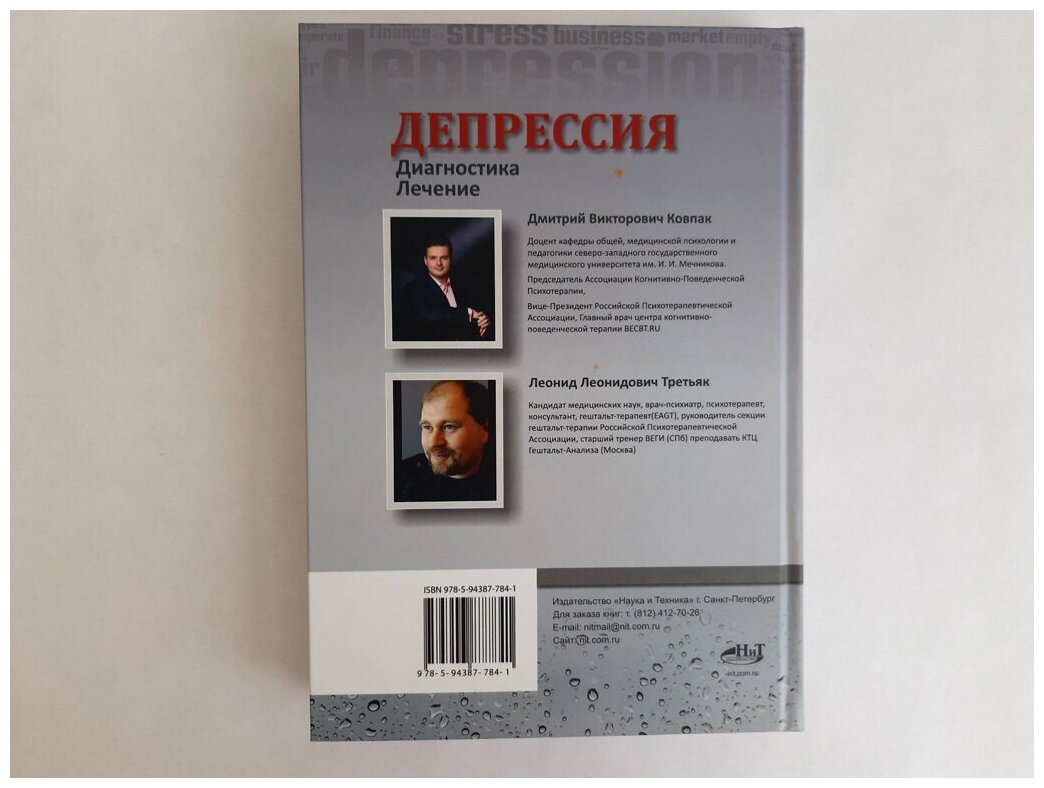 Авторы, Д. В. Ковпак, к.м.н., врач психиатр и психотерапевт с более чем двадцатилетним опытом работы с депрессивными пациентами, доцент кафедры общей, медицинской психологии и педагогики, Вице-президент Российской Психотерапевтической Ассоциации, Председатель Ассоциации Когнитивно-Поведенческой Психотерапии и Л. Л. Третьяк, врач психиатр и психотерапевт с более чем двадцатилетним опытом работы с депрессивными пациентами, к.м.н., врач-психиатр, психотерапевт, консультант, гештальт-терапевт (EAGT), руководитель секции гештальт-терапии Российской Психотерапевтической Ассоциации, старший тренер ВЕГИ (СПб) преподавать КТЦ Гештальт-Анализа (Москва) дают системное описание методологии, технологии терапии и конкретных техник работы с депрессивными пациентами на примере ведущих направлений и подходов психотерапии, психиатрии и консультировании.