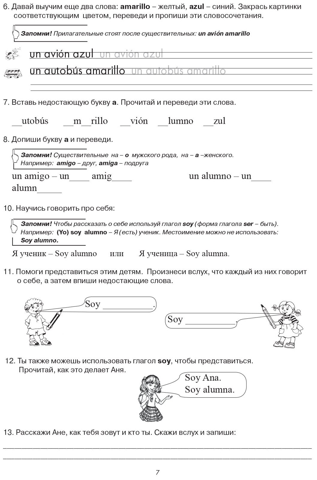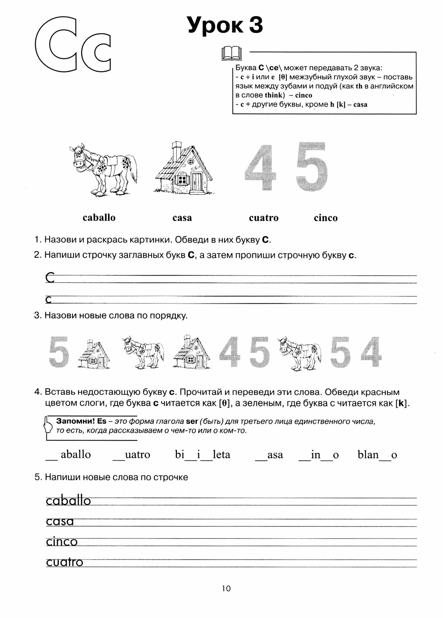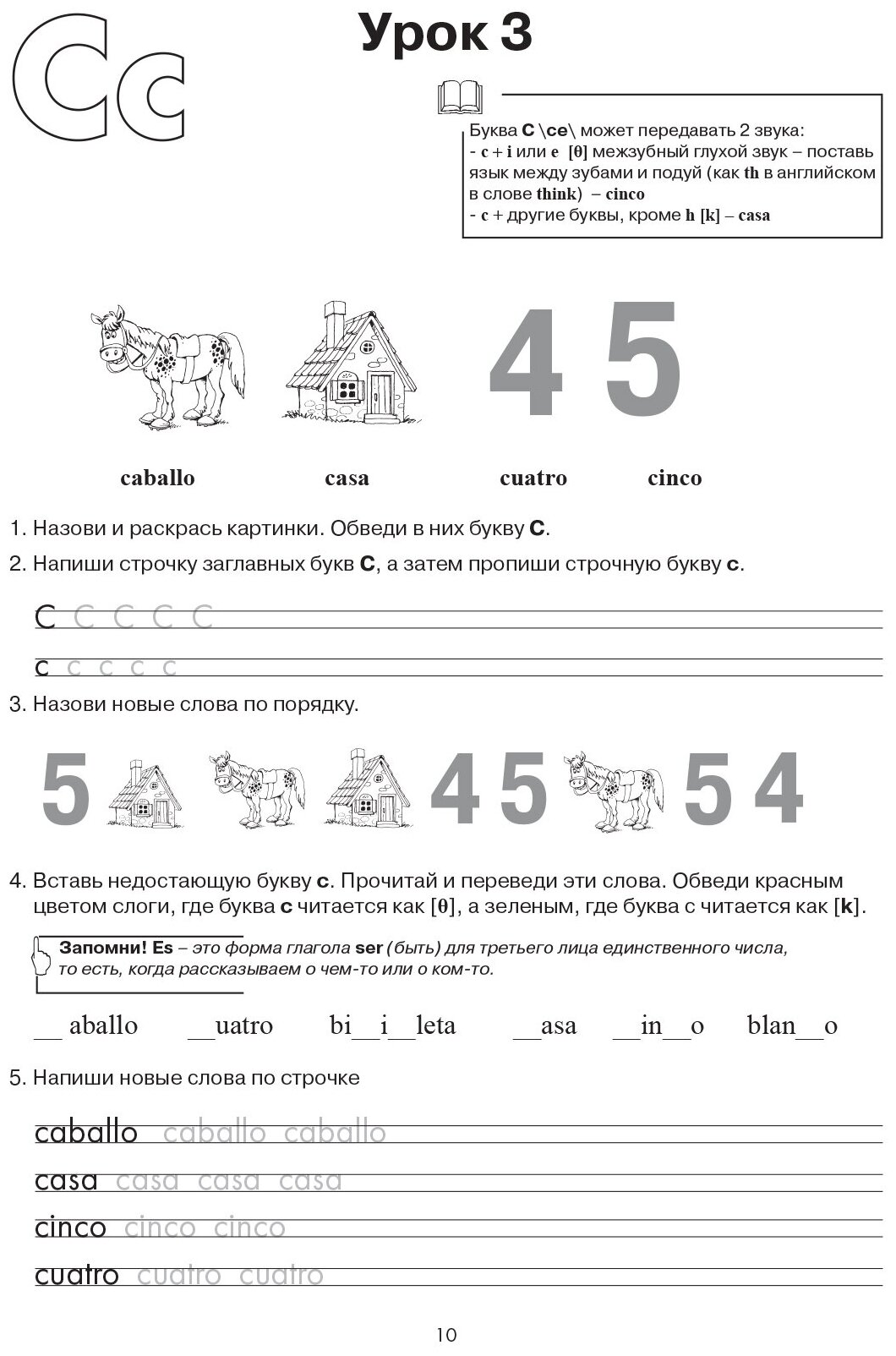 Рабочая тетрадь знакомит детей с буквами испанского алфавита и их написанием, с правилами произношения звуков и их сочетаний. Дети запоминают слова по таким темам как еда, животные, транспорт и учатся составлять простые предложения, а также знакомиться, задавать вопросы и рассказывать о себе на испанском. Занимательные упражнения и веселые рисунки помогут освоению языка на ранней стадии его изучения.