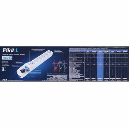 Самая популярная модель, выпускаемая компанией с 1992 года Сетевой фильтр Pilot L снабжен варисторной защитой от импульсных помех и грозового разряда, имеет защиту от перегрузки и тока короткого замыкания. Для защиты от высокочастотных помех используется качественный емкостной фильтр.