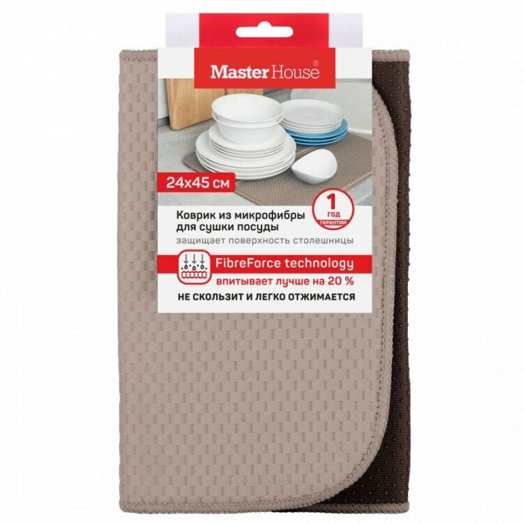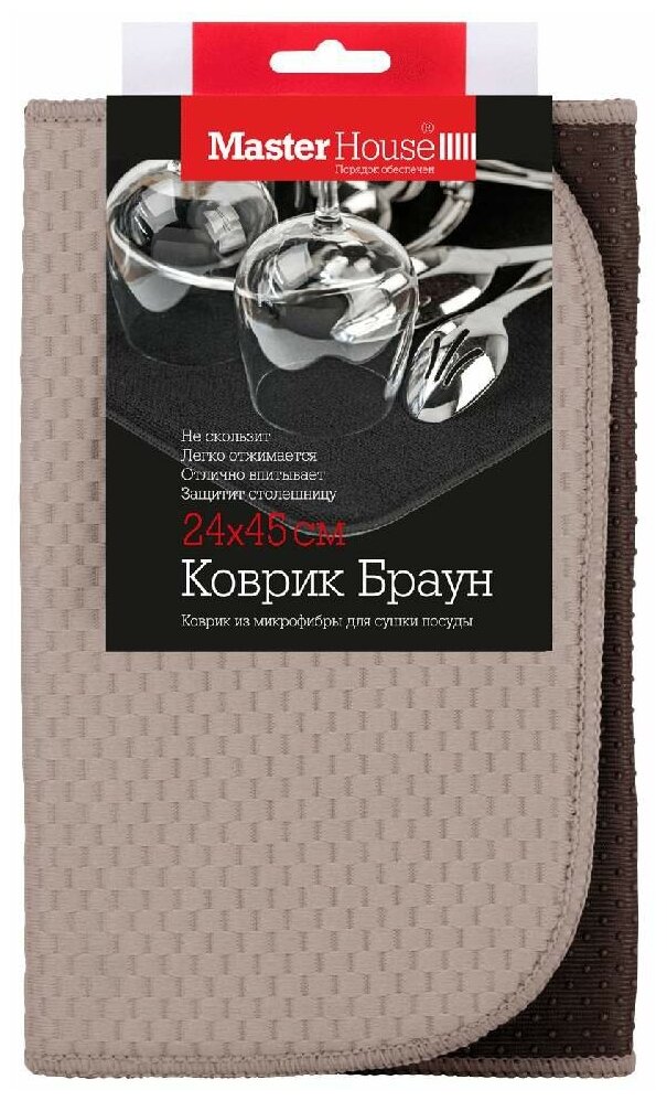 Коврик для сушки посуды из микрофибры бренда Master House. Размер 24*45см, цвет браун Коричневый 60447. Быстро и эффективно впитывает влагу, не оставляя следов и разводов. Идеально подходит для кухни любого стиля.