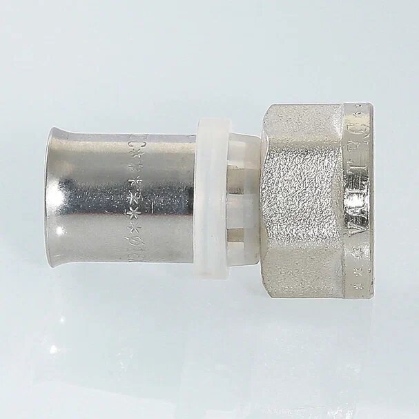 Двухсторонний прямой латунный пресс - фитинг для соединения металлополимерной трубы и компонента системы с резьбовым подключением. Резьба фитинга - внутренняя трубная, 16 х 1/2 , по ГОСТу 6357. VTm.202.N