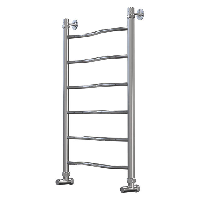 Водяной полотенцесушитель из нержавеющей стали. В комплекте: вентиль угловой - 1 пара, переходник с держателем, с воздухоотводчиком - 1 пара, дюбель распорный 6 х 30 - 4шт, саморез 4 х 30 - 4 шт.