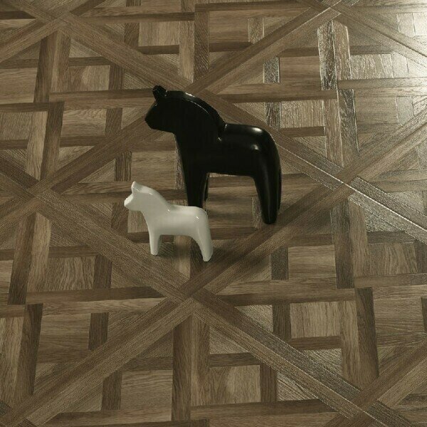 Opera - коллекция ламината черного, белого, коричневого оттенков, выполненного под художественный паркет. Доски размера 120х40 см разбиты на квадратные модули со стороной 40 см, дополнены выдавленной 4U-фаской.
