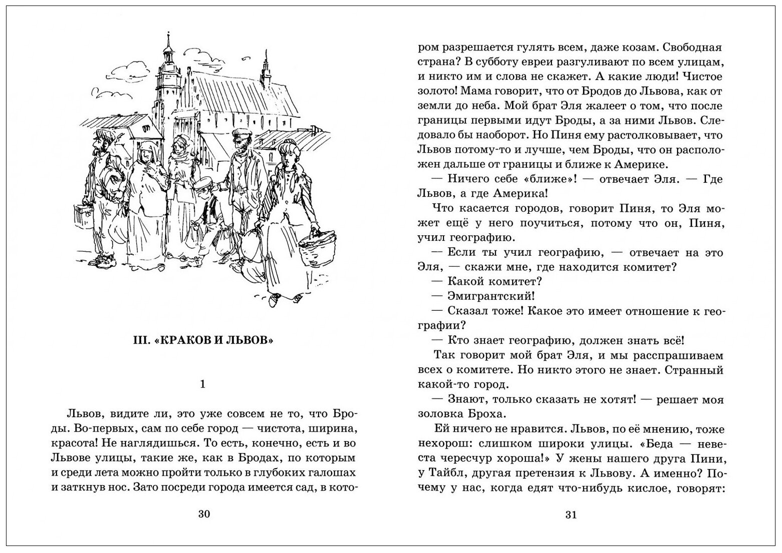 Основной отзыв мой в первой книге про Мотла, добавлю только про эту часть, что она насыщена историческими подробностями, там рассказывается и про еврейские погромы и про общества для эмигрантов (побывала семья Мотла в разных странах Европы), особенно запомнилась история про девочку, которая не прошла медосмотр из-за глаз и осталась одна в Европе, тк еe не выпустили в Америку. Мотл обещает, как только заработает денег в Америке выслать ей "синий камень" для лечения глаз. В общем, читая книги, не раз пришлось заглянуть в интернет за историческими справками. Напечатано прекрасно, рекомендую со средней школы