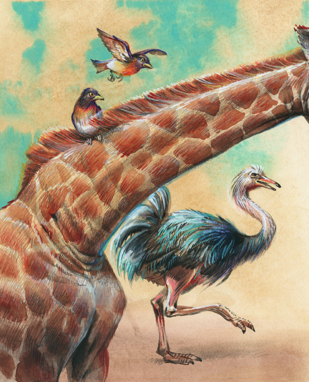 Он спрашивал своего высокого дядю страуса, отчего у него перья растут на хвосте