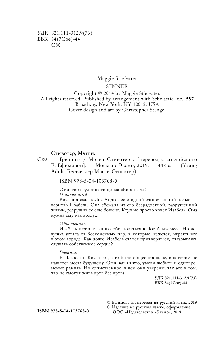 Книга: Грешник (Стивотер Мэгги); ООО "Издательство "Эксмо", 2019