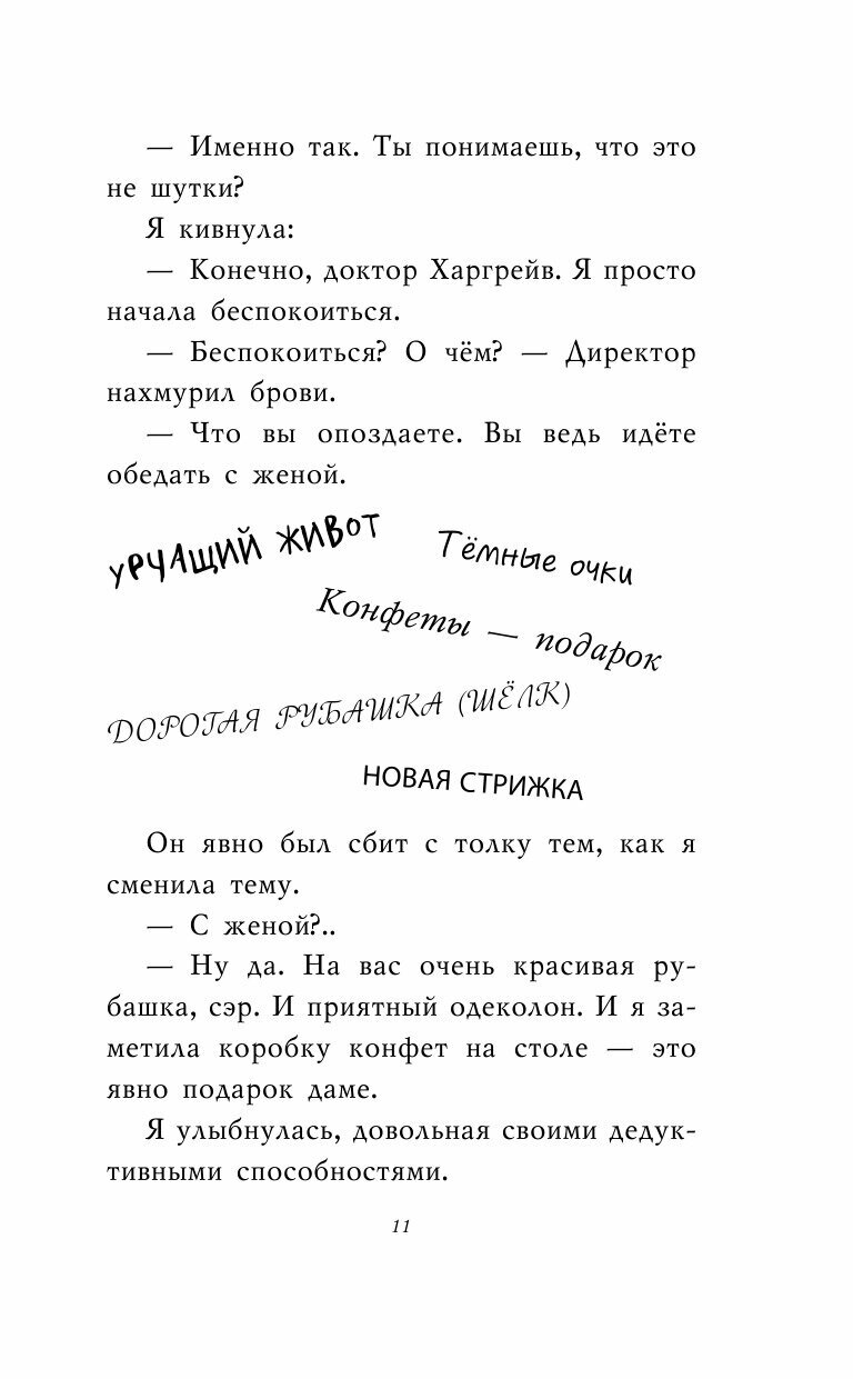 Главная героиня этой книги знает наизусть все истории о Шерлоке Холмсе, Эркюле Пуаро, мисс Марпл и других знаменитых сыщиках! Да и сама она обладает редким талантом детектива! Эта история не только подарит вам отличное настроение, но и докажет, как важно верить в свою мечту и не давать окружающим тебя сломать!