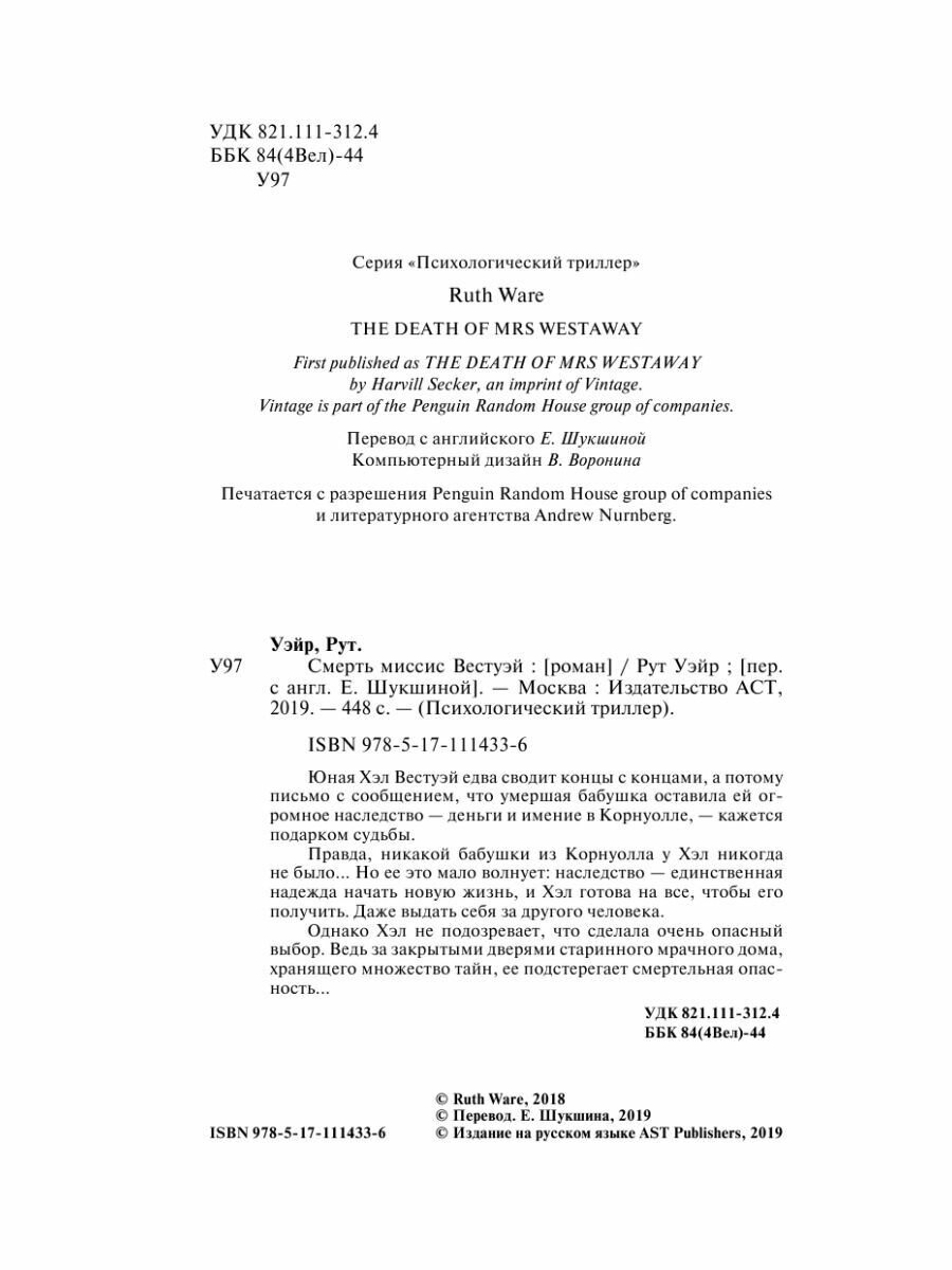 Книга: Смерть миссис Вестуэй (Рут Уэйр); Издательство АСТ, 2018