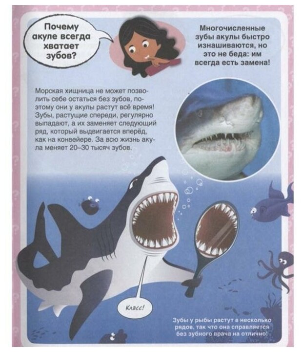 Энциклопедия разделена на разделы: животные, природа, наука, вопросы на каждый день и наше тело. В каждом разделе освещены безумно интересные факты. Читаю детям, а сама удивляюсь, что сама чего-то не знала))) очень интересно. Иллюстрации смешанные: рисованные и реальные фотографии. Книжка небольшого формата, легкая, бумага не просвечивает. Подойдет младшим школьникам для самостоятельного чтения.