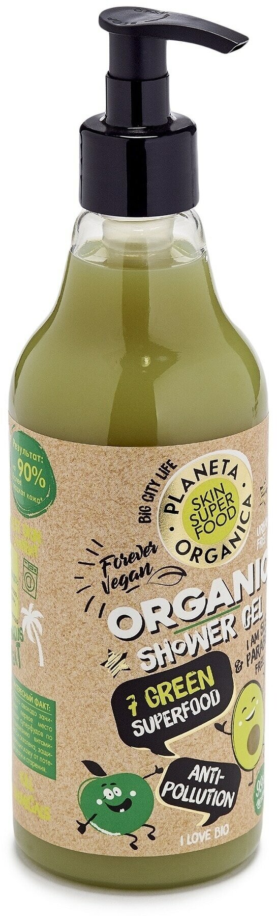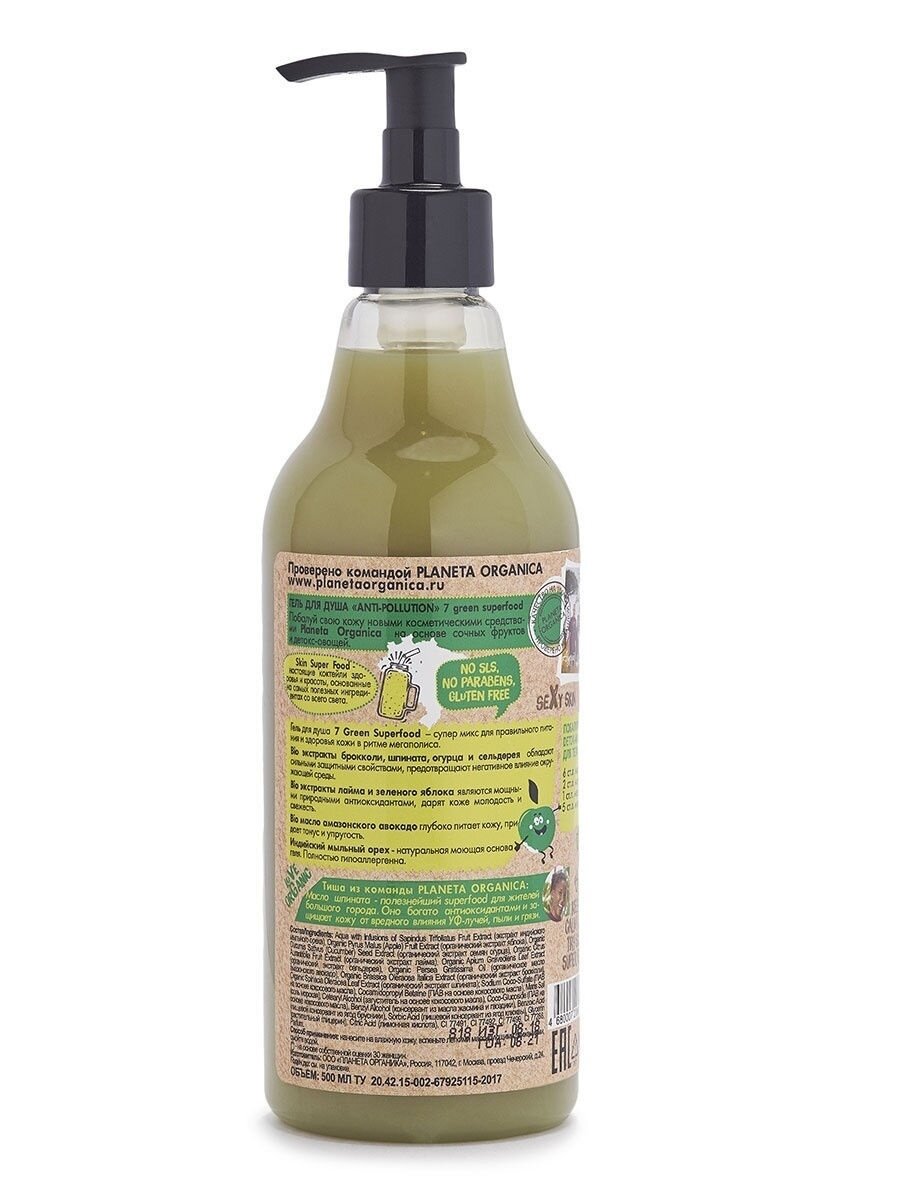 Гель для душа Planeta Organica Anti-pollution - супер микс для правильного питания и здоровья кожи в ритме мегаполиса. Bio экстракты брокколи, шпината, огурца и сельдерея обладают сильными защитными свойствами, предотвращают негативное влияние окружающей среды.