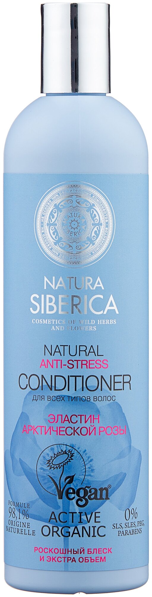 Высокоактивные экстракты сибирских растений с органических ферм Natura Siberica: Эластин арктической розы содержит важнейшие аминокислоты, которые глубоко увлажняют волосы, делают их упругими, эластичными и послушными. Кедровый стланик благодаря высокому содержанию аминокислот восстанавливает структуру и укрепляет волосы, наполняет их жизненной силой. Вулканическая голубика содержит большое количество витамина С и Е, придает волосам невероятный объем и сияющий блеск.