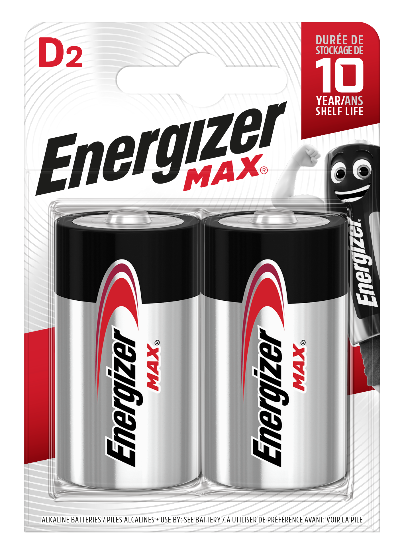 Батарейка алкалиновая Energizer Max — источник питания с выходным напряжением 1,5 В. Тип элемента питания — LR20 D. Электролитом является концентрированный щелочной раствор, материалом катода служит диоксид марганца, анода — порошок из очищенного цинка со специальными добавками, обеспечивающими защиту от коррозии. Технология увеличивает площадь взаимодействия и повышает плотность батареи по сравнению с солевыми аналогами.