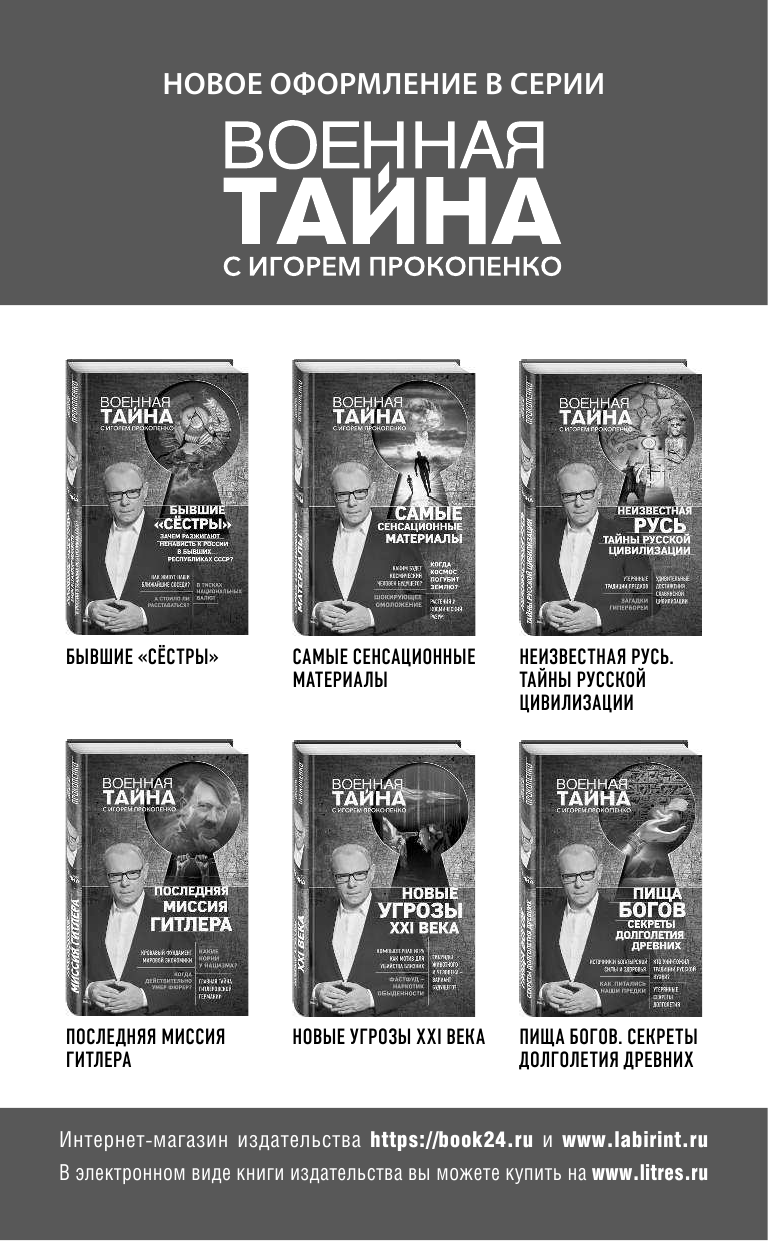 Новая книга Игоря Прокопенко уведет вас вглубь тысячелетий и укажет путь к новым орбитам, расскажет о нашем скрытом происхождении и о том, в каком направлении будет происходить дальнейшая эволюция человека.