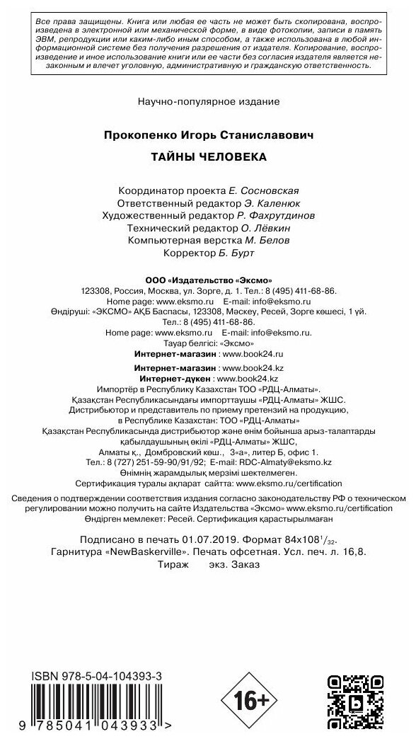 Книга: Тайны человека (Прокопенко Игорь Станиславович); ООО "Издательство "Эксмо", 2019