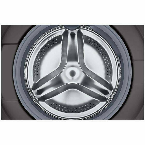 Устройство оснащено функциями обработки паром, воздушно-пузырьковой системой, а также возможностью дозагрузки вещей в барабан. Система безопасности представлена в виде полной защиты от протечек. Люк открывается налево, барабан имеет поверхность Diamond Drum. Корпус выполнен в сером оттенке. За цикл работы техника использует 1,04 кВт•ч электроэнергии. Класс энергоэффективности В. Габариты устройства – 85х60х45,6 см.