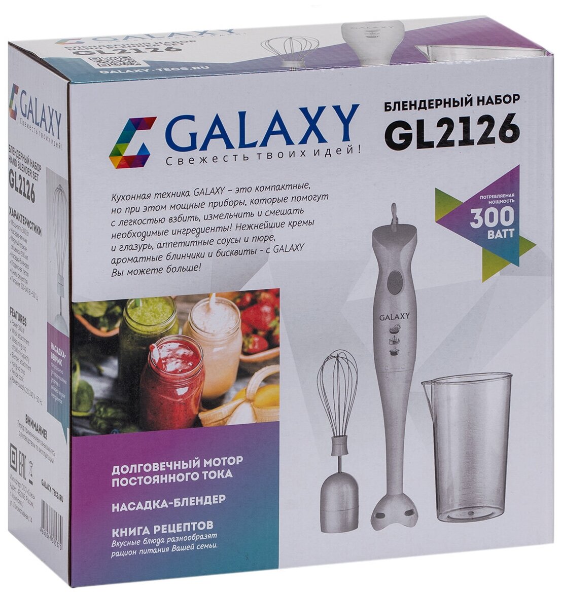 | Комплектация | Блендер, венчик, мерный стакан |