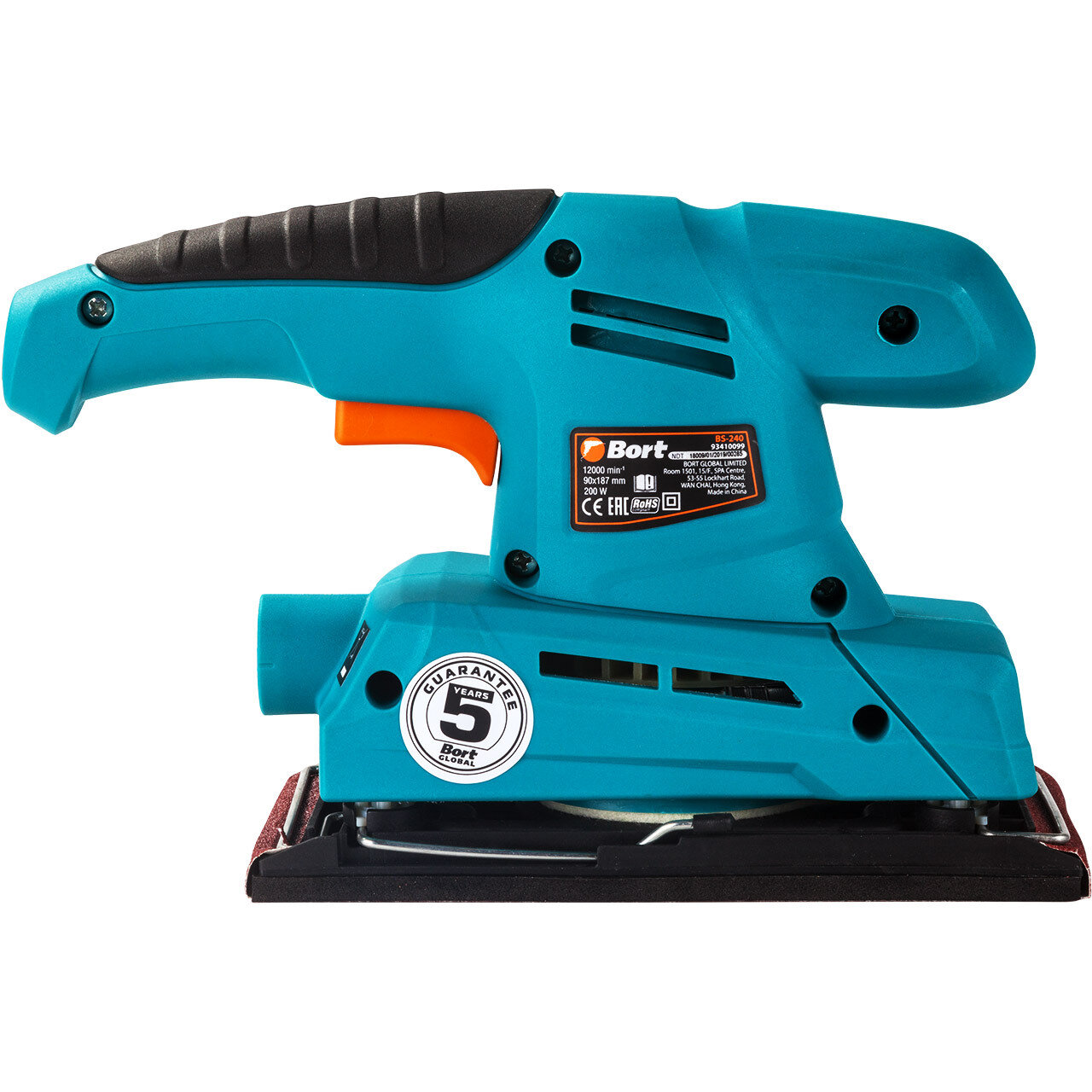 Шлифовальная вибрационная машина Bort – удобный инструмент мощностью 200 Вт. Хороший помощник при деревообработке, отделочных работах и ремонте помещений, изготовлении и восстановлении мебели. Особенности конструкции обеспечивают высокий комфорт использования инструмента. Небольшой вес и эргономичная форма корпуса с двуручным хватом способствуют эффективному и удобному выполнению различных видов работ. Крепление шлифлиста осуществляется зажимами. В комплект входит пылесборный мешок, шлифовальная бумага и дополнительный комплект щеток.