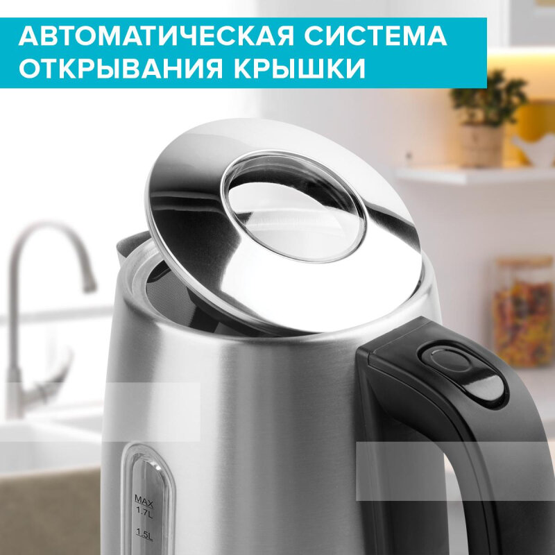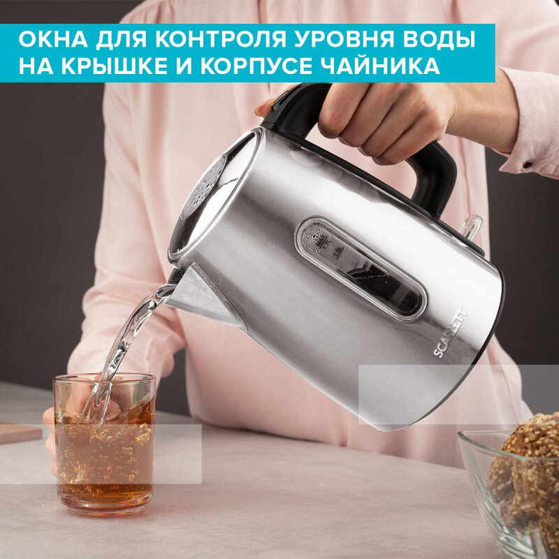 Электрический чайник SC-EK21S68 объемом 1,7 л. Прибор оснащен окном для контроля уровня воды сбоку и дополнительным окном на крышке, что позволит легче контролировать уровень наливаемой воды. Автоматическое открытие крышки, закрытый нагревательный элемент– облегчат пользование прибором.