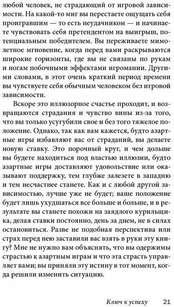 .Аллен Карр объясняет, как игроманы попадают в ловушку зависимости и почему они продолжают играть несмотря на то, что азартные игры явно угрожают их благополучию и разрушают их жизнь. Он подробно объясняет механизм формирования зависимости, разбирает навязанные нам психологические установки, формирующие зависимость от азартных игр, помогает избавиться от этих установок и развеивает иллюзии и мифы об азартных играх, которые внедряет в наше сознание игорный бизнес и которые держат нас на крючке игровой зависимости.