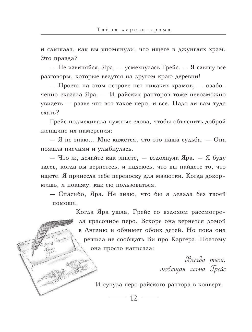 "Тайна дерева - храма" - четвертая книга серии "Суперзавры". Книжка во всех отношениях замечательная. Очень интересные, захватывающие приключения , происходящие в альтернативном мире, где динозавры живут вместе с людьми. Они не просто живут в природе, они -друзья /ну, или враги/ людей. Ребенок прочитал на одном дыхании и ждёт с надеждой продолжение. Книжка , как и все книги серии, чудесно оформлена. Иллюстрации черно - белые, но какие выразительные! Восторг! Книга понравится всем любителям динозавров и всем любителям фэнтези