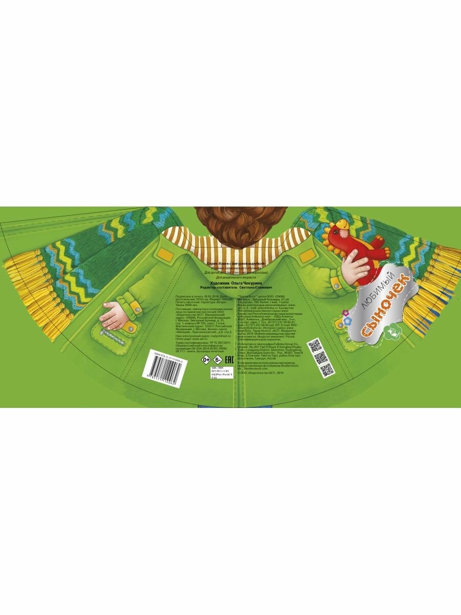 Книга-игрушка со стихами, которые можно читать ребенку перед сном, в поездке и на отдыхе. - Вырубка в форме куклы, - Красочные наряды для Любимого сыночка, - Плотный картон, глянцевая ламинация и золотая фольга на обложке.