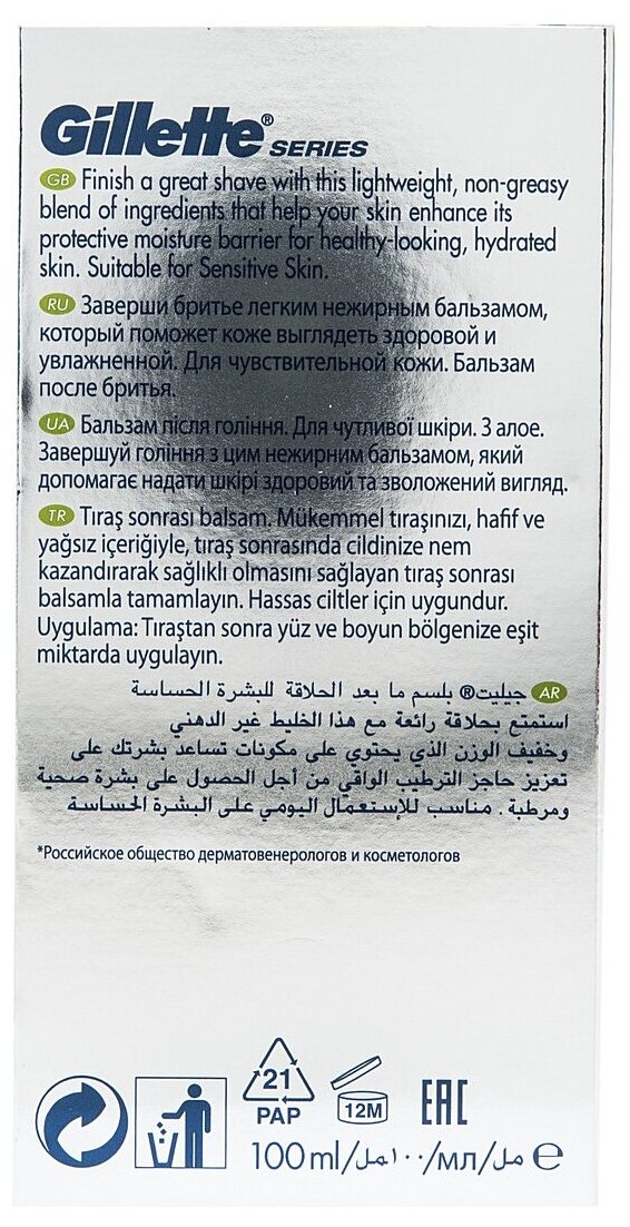 Бальзам после бритья Gillette Series Sensitive Skin для чувствительной кожи100 мл (81509670)