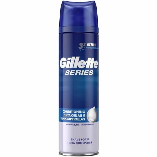 Питает и тонизирует кожу во время бритья. Мужская пена для бритья Gillette Series Conditioning Питающая и тонизирующая с маслом какао оказывает тройное действие. Формула тройного действия с маслом какао смягчает и успокаивает кожу для комфортного бритья, увлажняет и обеспечивает дополнительную защиту от раздражения. Она делает бритье гладким, а также питает и тонизирует кожу.
