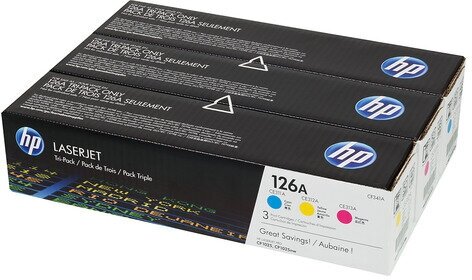 Упаковка из трех картриджей с тонером HP 126A LaserJet позволяет получить профессиональное качество печати по сравнению с отдельными картриджами. Будьте уверенны в результате работы, так как оригинальные картриджи с тонером HP LaserJet разработаны в соответствии с особенностями принтеров HP для обеспечения идеальной производительности.