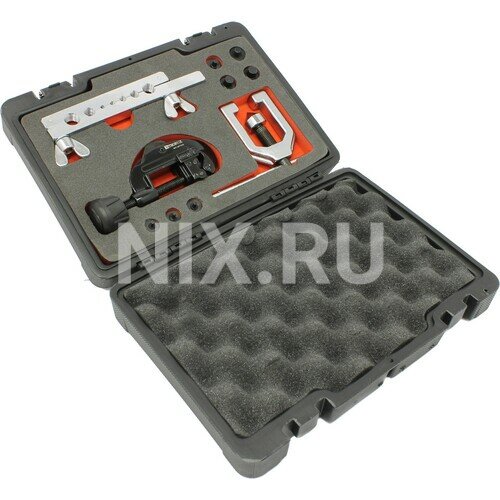 | Комплект поставки | пуансоны для двойной развальцовки трубок - 7 шт, станок для развальцовки трубок - 1 шт, труборез роликовый с резаком для удаления заусенцев - 1 шт, станок для развальцовки трубок - 1 шт, пластиковый кейс - 1 шт |