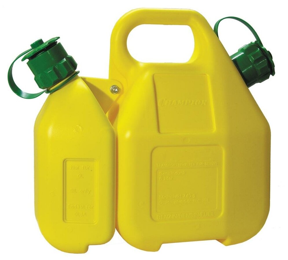 Комбинированная канистра Champion C1301 из качественного пластика состоит из двух самостоятельных отсеков вместительностью 3 литра и 6 литров. Облегчает работу по приготовлению топливной смеси. Благодаря полупрозрачному пластику, можно не снимая крышки определить в ней уровень топлива. Специальная конструкция горловины защищает от разливания топлива во время случайного опрокидывания канистры.