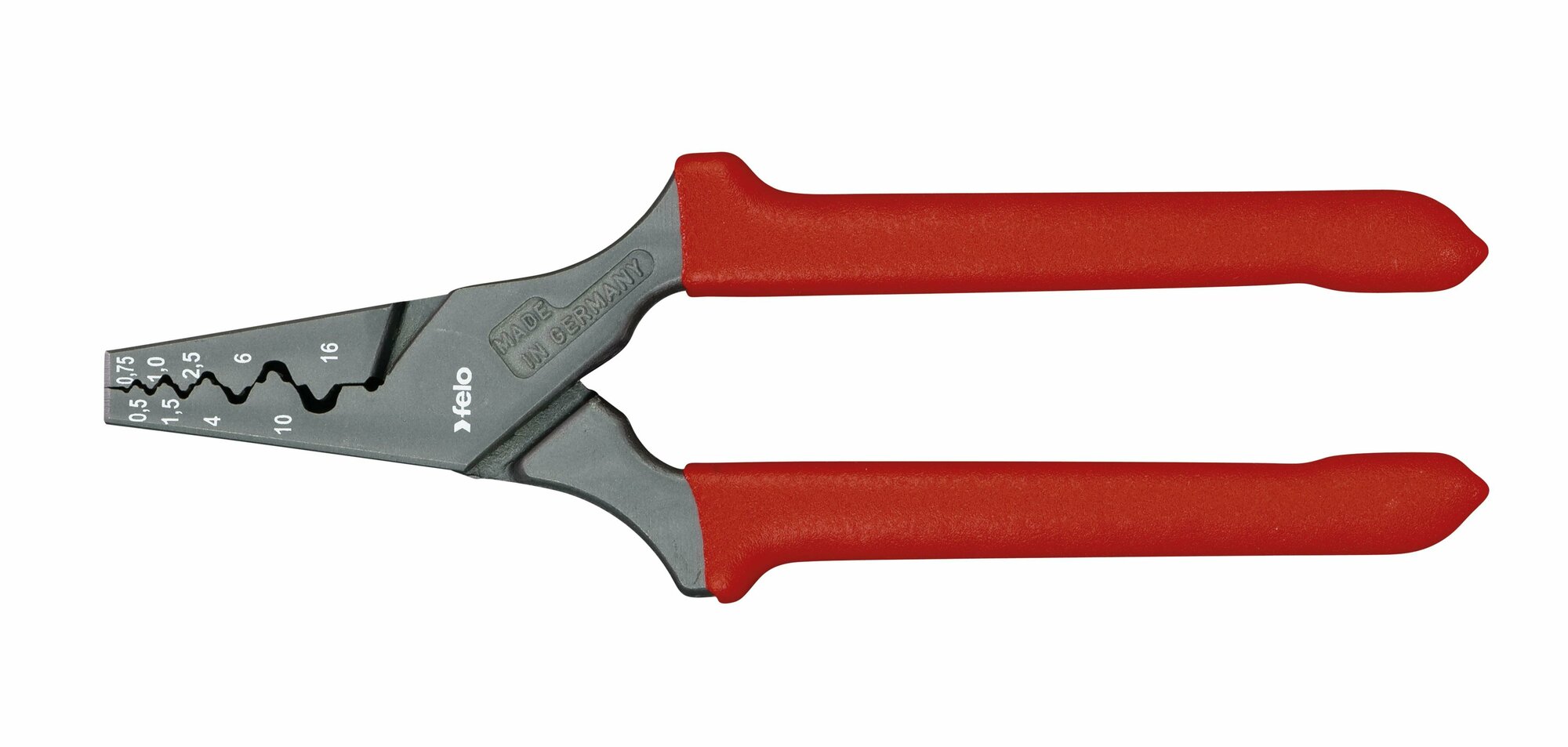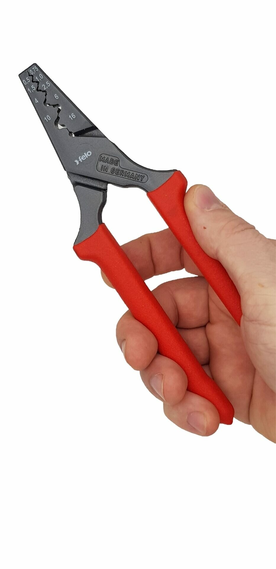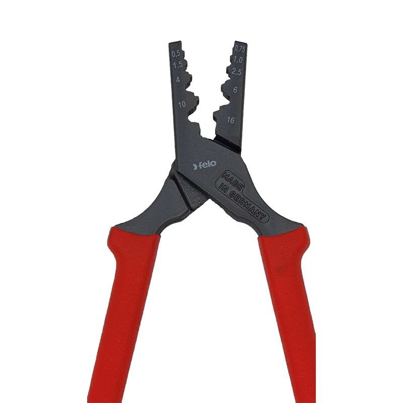 Пресс-клещи FELO подходит для резки провода, опрессовки наконечников сечением от 0,5 до 16 мм², снятия оболочки с плоских проводов.