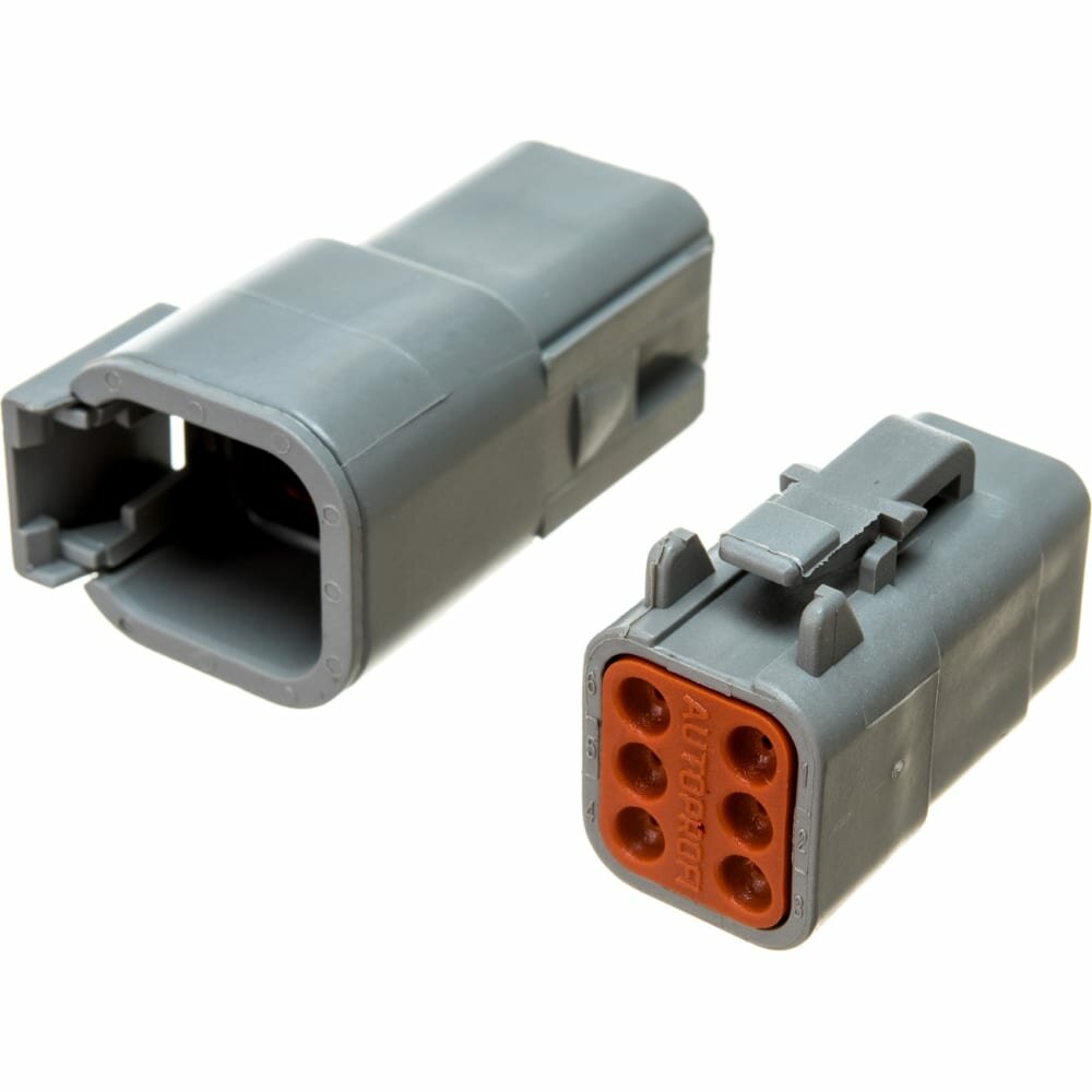 Коннектор для соединения шести контактов. Рассчитан на нагрузку до 7,5 ампер на контакт. Каждый разъем коннектора оснащен специальной системой замков E-LOCK, обеспечивающих надежное соединение в любых условиях. Коннектор можно закрепить на пластиковой или металлической монтажной площадке для удобства установки. Коннекторы обеспечивают гарантированный контакт в диапазоне температур от -55 до +125 °С. Степень защиты контактов: IP67. Габариты штыревого разъема («папа»): 30,10х20,75х19,20 мм. Габариты гнездового разъема («мама»): 43,69х23,80х15,24 мм. Комплект продается в сборе.Комплектация — Корпус разъема штыревой 1 шт. — Корпус разъема гнездовой 1 шт. — Замок-фиксатор штыревых контактов 1 шт. — Замок-фиксатор гнездовых контактов 1 шт. — Сокет контакт, литой 7 шт. — Плаг контакт, литой 7 шт.