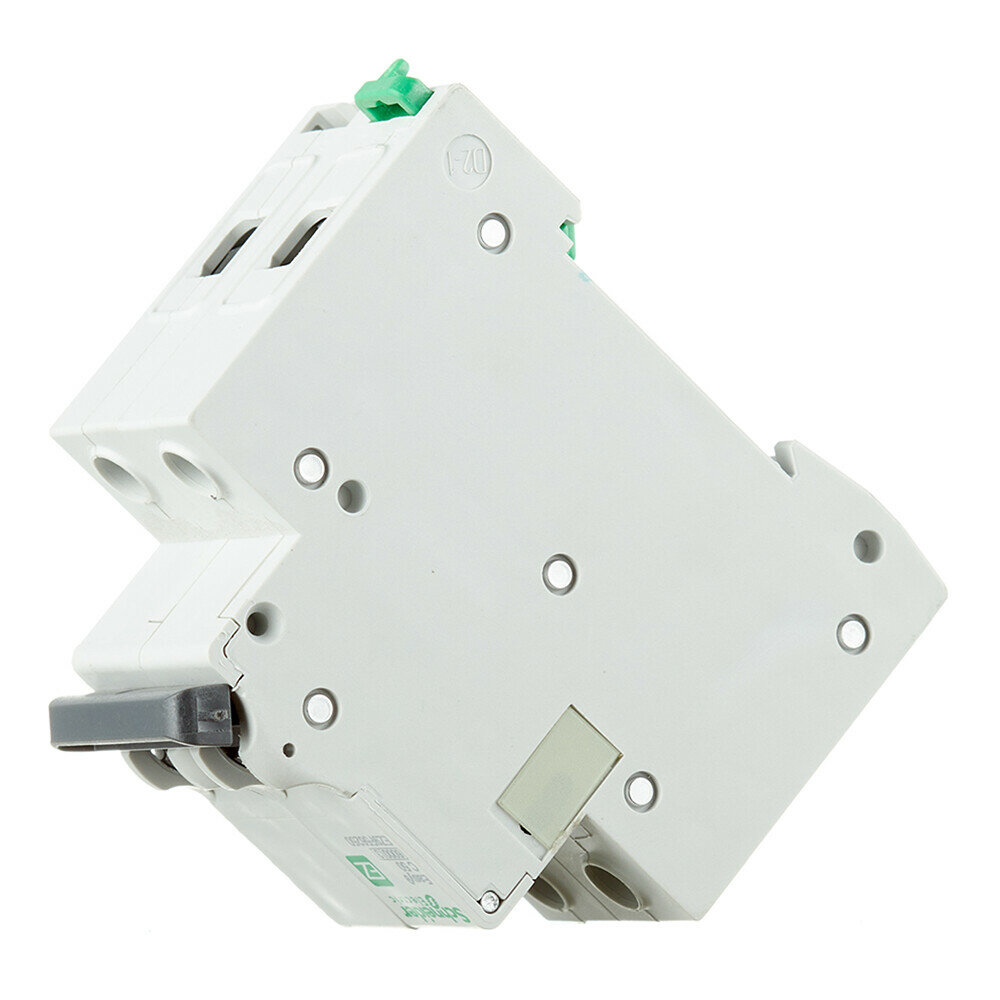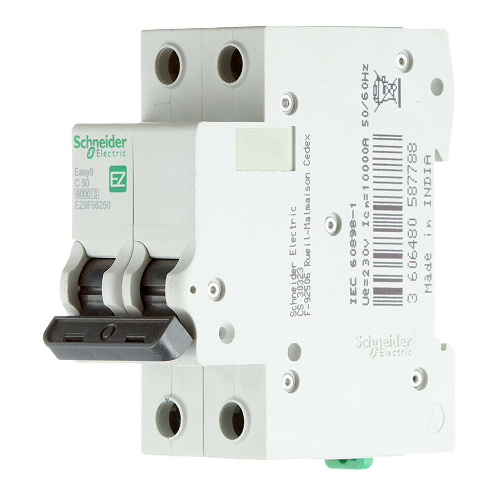 Двухполюсный автоматический выключатель Schneider Electric Easy9 типа C, рассчитанный на ток нагрузки 32 А и максимальную силу тока (отключательную способность) 6 кА предназначен для защиты электроприборов от поломок при перегрузках электросети или коротком замыкании. Устройство замеряет показатели электрического тока в непрерывном режиме и в случае его превышения срабатывает расцепитель, который размыкает электрическую цепь. Автомат устанавливается в специальных электрощитках в жилых домах, офисных и производственных помещениях.Параметр отключающей способности двухполюсного автомата Schneider Electric Easy9 (6 кА) означает максимальную силу тока, при которой срабатывает автоматический выключатель. При превышении этого показателя корректная работа автоматики не гарантируется.При выборе защитного автомата по отключающей способности необходимо учитывать максимально возможный ток при коротком замыкании. Обычно, в более старых постройках, используются приборы на 4.5 или 6 кА. Для квартиры в новых домах стоит выбрать защитную автоматику на 10 кА.Обратите внимание: несмотря на похожую единицу измерения и одинаковые числовые значения, номинальный ток и отключающая способность – это разные показатели!Автоматические выключатели типа C наиболее распространены в бытовых сетях. Для того, чтобы произошло срабатывание соленоида электромагнитного расцепления, установленного в таком приборе, нужно, чтобы проходящий через него поток электронов превысил номинальную величину в 5 раз. Срабатывание теплового расцепителя при пятикратном превышении номинала аппарата защиты происходит через 1,5 сек.Сделано в Индии.