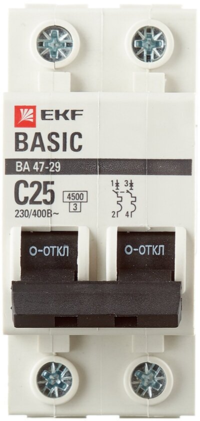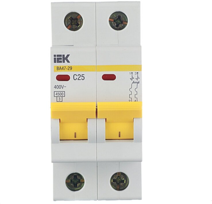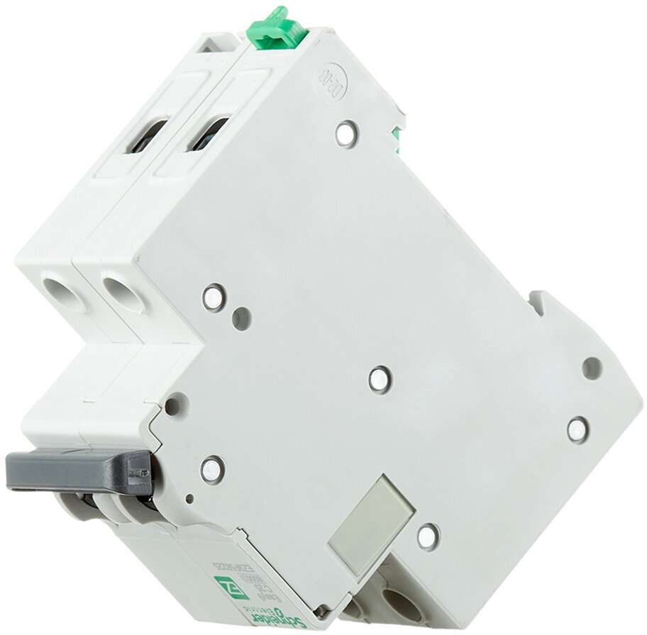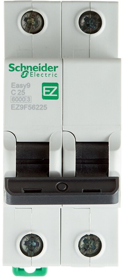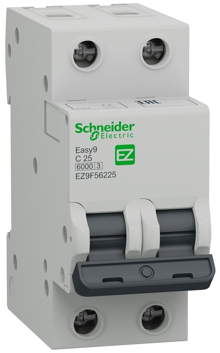 Двухполюсный автоматический выключатель Schneider Electric Easy9 типа C, рассчитанный на ток нагрузки 40 А и максимальную силу тока (отключательную способность) 6 кА предназначен для защиты электроприборов от поломок при перегрузках электросети или коротком замыкании. Устройство замеряет показатели электрического тока в непрерывном режиме и в случае его превышения срабатывает расцепитель, который размыкает электрическую цепь. Автомат устанавливается в специальных электрощитках в жилых домах, офисных и производственных помещениях.Параметр отключающей способности двухполюсного автомата Schneider Electric Easy9 (6 кА) означает максимальную силу тока, при которой срабатывает автоматический выключатель. При превышении этого показателя корректная работа автоматики не гарантируется.При выборе защитного автомата по отключающей способности необходимо учитывать максимально возможный ток при коротком замыкании. Обычно, в более старых постройках, используются приборы на 4.5 или 6 кА. Для квартиры в новых домах стоит выбрать защитную автоматику на 10 кА.Обратите внимание: несмотря на похожую единицу измерения и одинаковые числовые значения, номинальный ток и отключающая способность – это разные показатели!Автоматические выключатели типа C наиболее распространены в бытовых сетях. Для того, чтобы произошло срабатывание соленоида электромагнитного расцепления, установленного в таком приборе, нужно, чтобы проходящий через него поток электронов превысил номинальную величину в 5 раз. Срабатывание теплового расцепителя при пятикратном превышении номинала аппарата защиты происходит через 1,5 сек.Сделано в Индии.