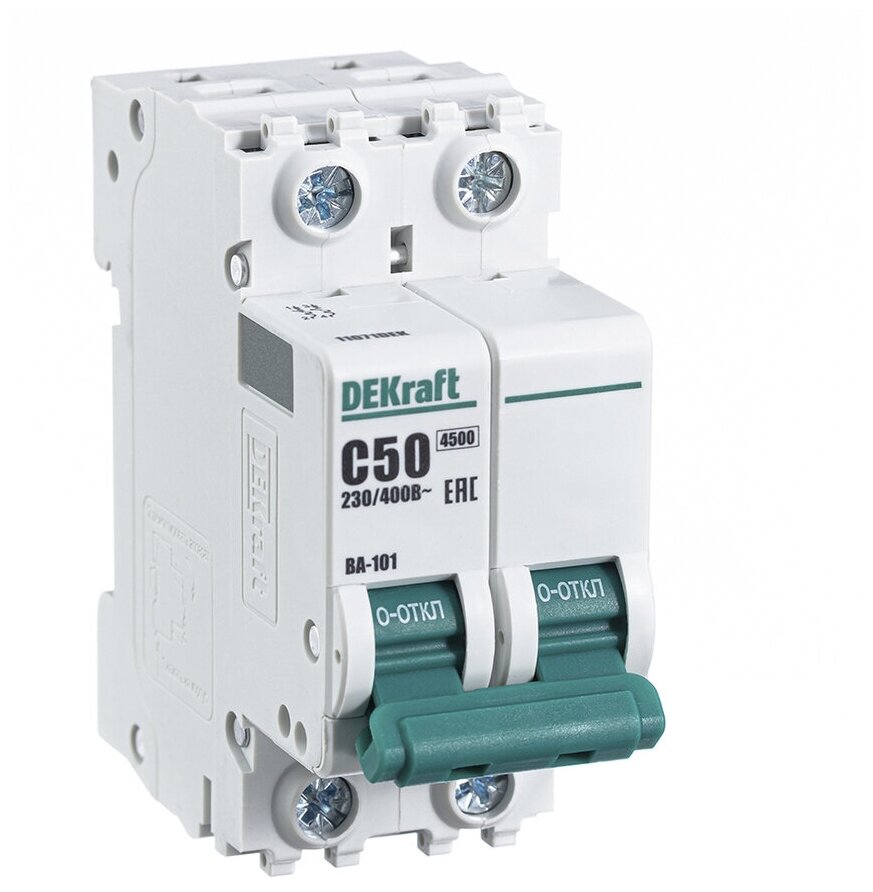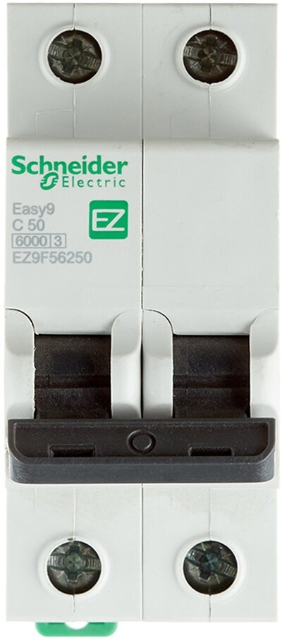Двухполюсный автоматический выключатель Шнайдер Easy9 типа C, рассчитанный на ток нагрузки 50 А и максимальную силу тока (отключательную способность) 6 кА предназначен для защиты электроприборов от поломок при перегрузках электросети или коротком замыкании. Устройство замеряет показатели электрического тока в непрерывном режиме и в случае его превышения срабатывает расцепитель, который размыкает электрическую цепь. Автомат устанавливается в специальных электрощитках в жилых домах, офисных и производственных помещениях.Параметр отключающей способности двухполюсного автомата Шнайдер Easy9 (6 кА) означает максимальную силу тока, при которой срабатывает автоматический выключатель. При превышении этого показателя корректная работа автоматики не гарантируется.При выборе защитного автомата по отключающей способности необходимо учитывать максимально возможный ток при коротком замыкании. Обычно, в более старых постройках, используются приборы на 4.5 или 6 кА. Для квартиры в новых домах стоит выбрать защитную автоматику на 10 кА.Обратите внимание: несмотря на похожую единицу измерения и одинаковые числовые значения, номинальный ток и отключающая способность – это разные показатели!Автоматические выключатели типа С обычно используются в быту или на производственных и строительных объектах, для обеспечения изоляции проводников, при монтаже стендов, трансформаторов, двигателей. Устройства размыкают цепь при 5-10 кратном превышении номинальной силы тока.Сделано в Индии.