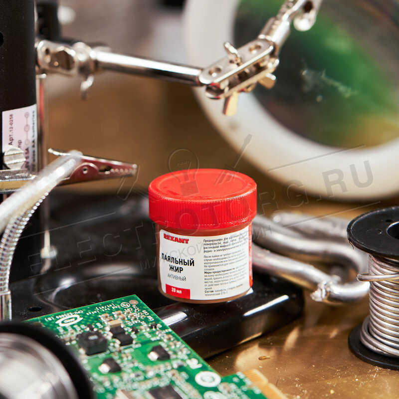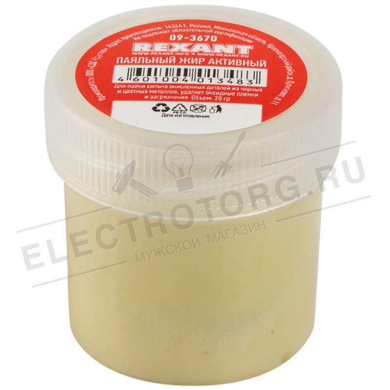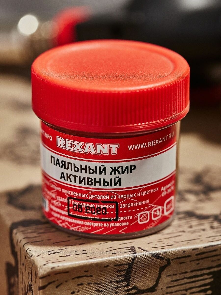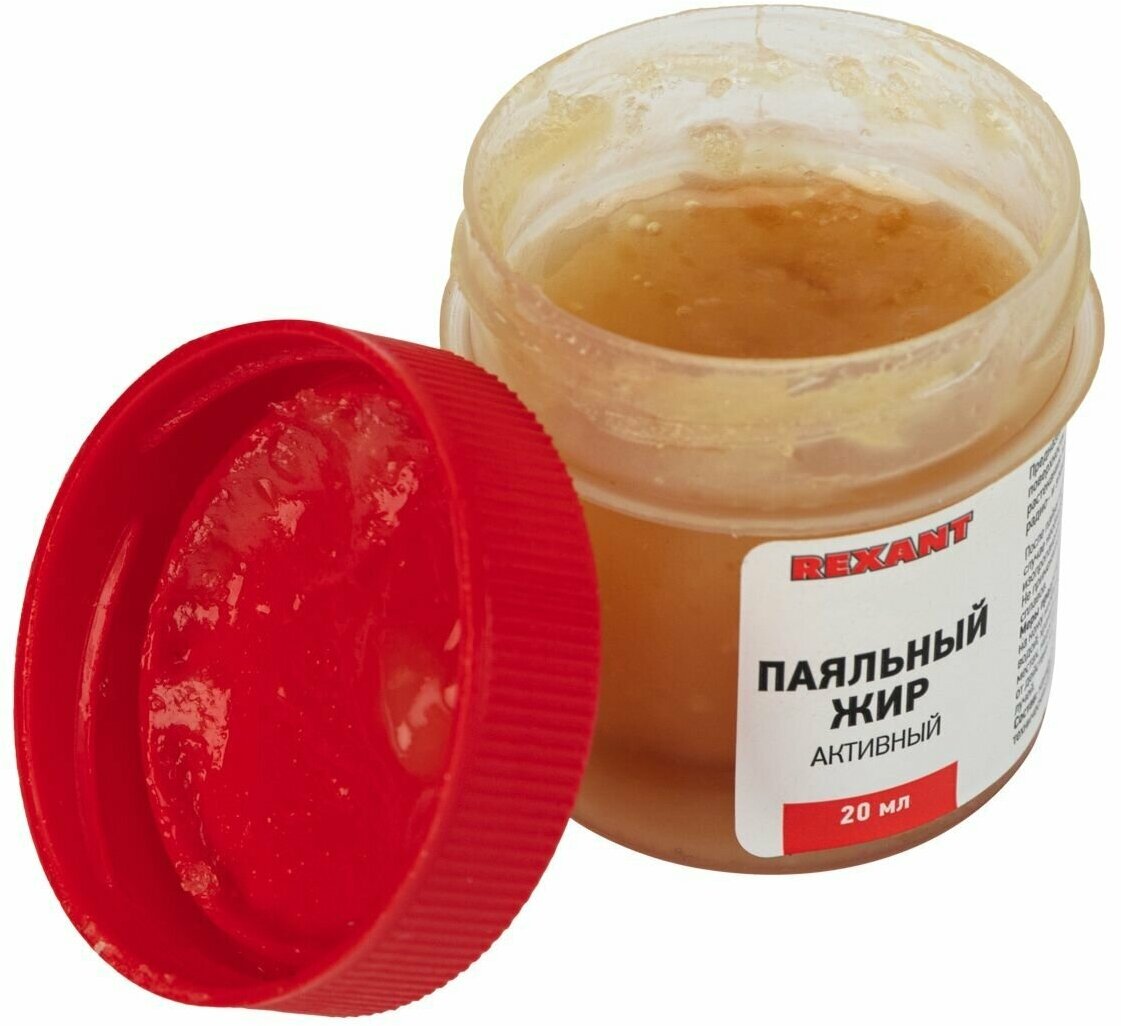 Паяльный жир АКТИВНЫЙ 20гр REXANT предназначен для удаления оксидов с поверхности под пайку, улучшения растекания жидкого припоя при пайке радио и электротехнических устройств. Главным образом, жир хорошо держится на различных металлических контактах, тем самым в отличие от жидкого флюса, есть возможность точного дозирования, и высокой скорости нанесения на большое количество мест паек. Данный флюс применяется при пайке сильно окисленных деталей черных и цветных металлов или поверхностей припоями оловянно-свинцовой группы. После пайки не требует промывки, а в случае необходимости легко удаляется изопропанолом или бензином "Калоша".