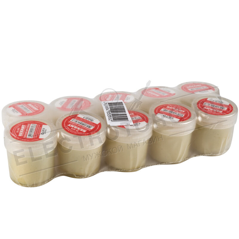 Паяльный вязкий жир активного типа используется для удаления оксидов с поверхности под пайку, улучшения растекания жидкого припоя при пайке радио и электротехнических устройств. Плотность и густота эластичного материала позволяет легко располагать его на различных поверхностях в нужных пропорциях.