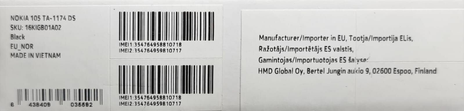 | Комплект поставки | Телефон Nokia 105, краткое руководство, зарядное устройство с разъемом Micro USB |