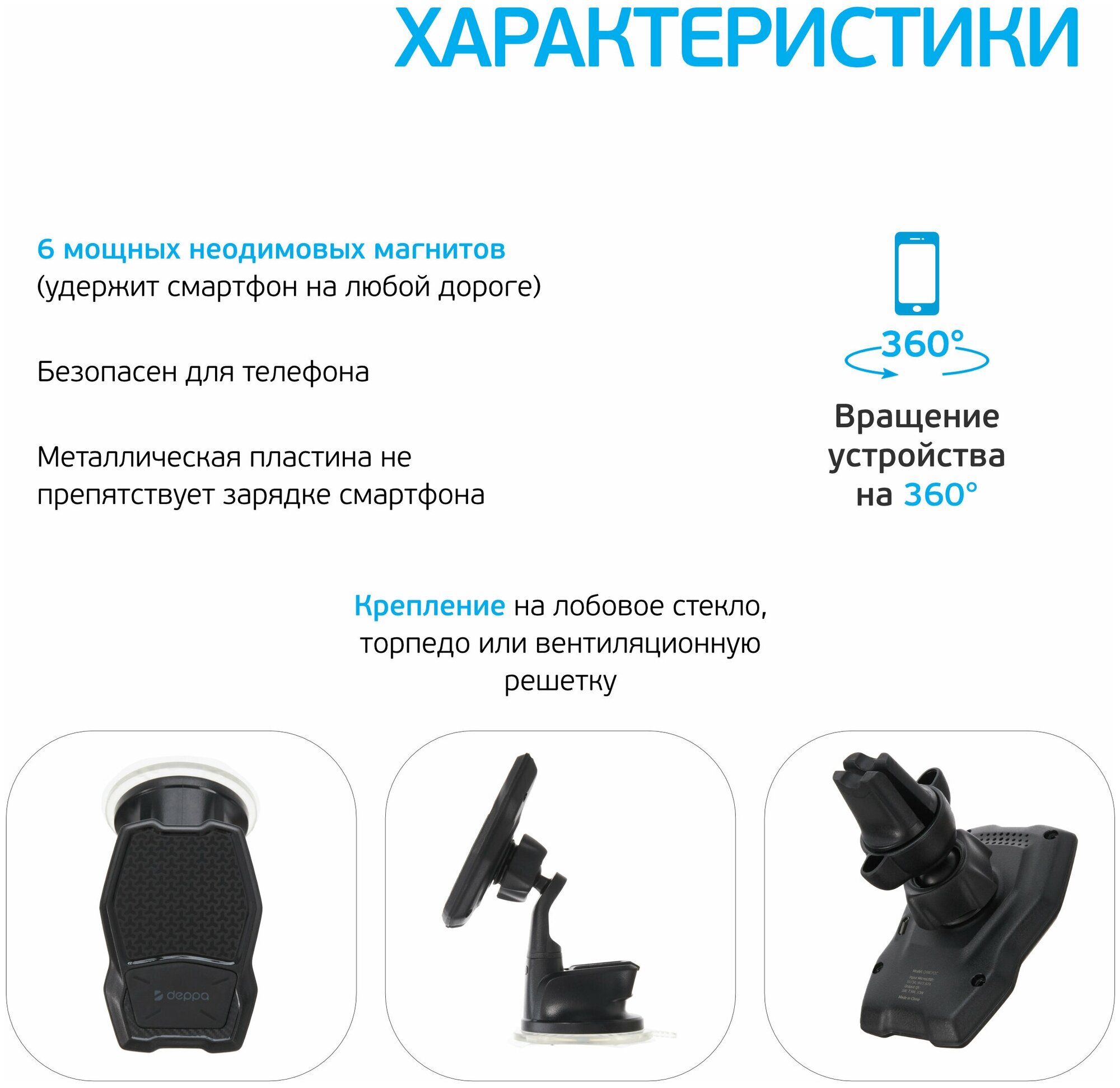 Держатель Deppa Mage Qi магнитный беспров.з/у. черный для смартфонов (55157)