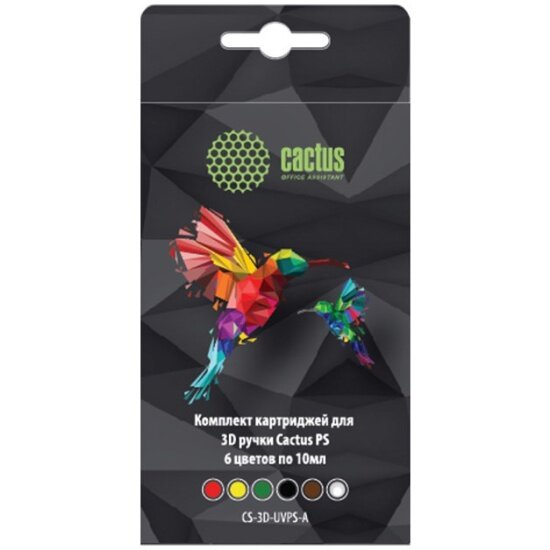 Набор из 6 цветов Cactus для фотополимерных 3D ручек. Пластик изготовлен из фоточувствительной полимерной смолы, которая отвердевает под воздействием ультрафиолета.