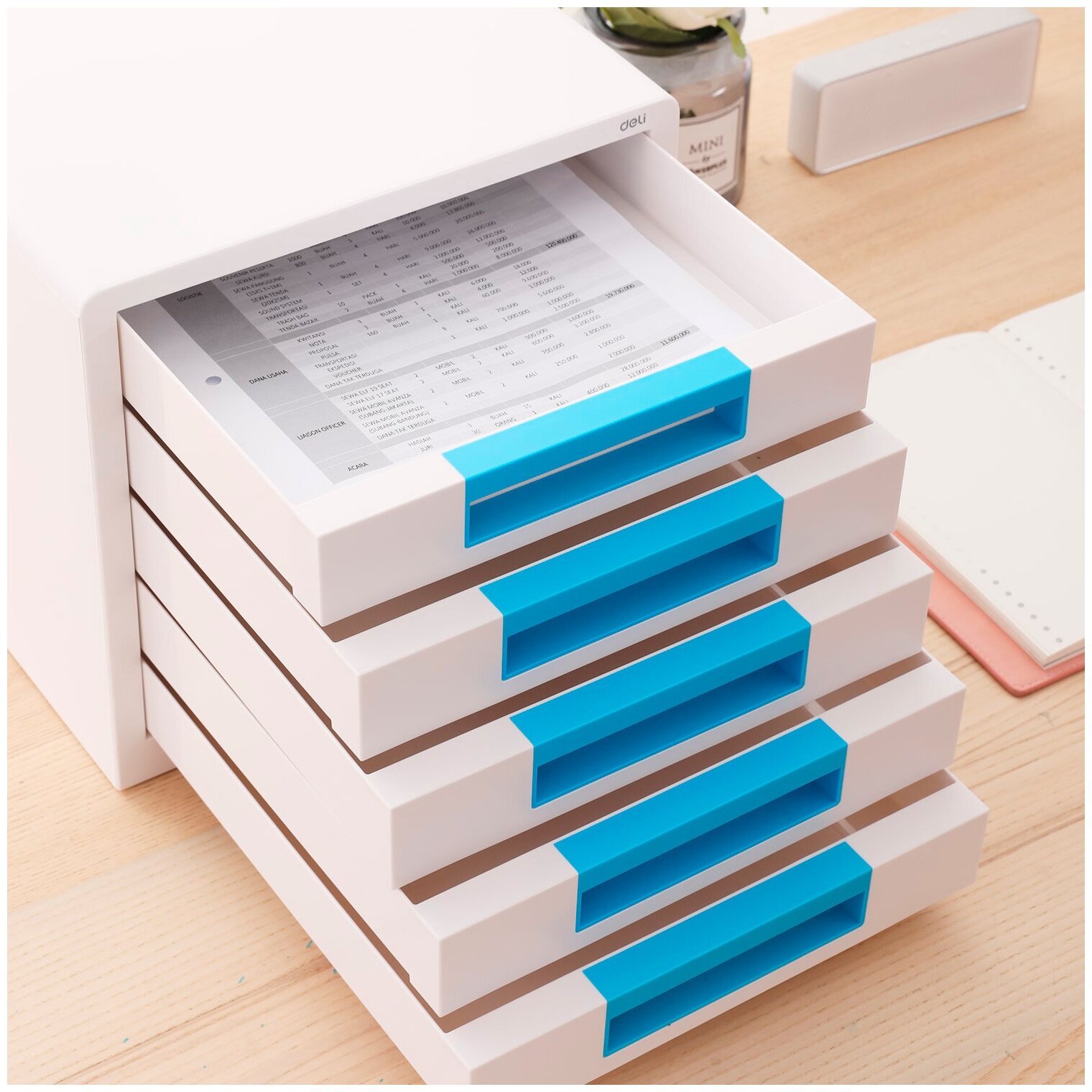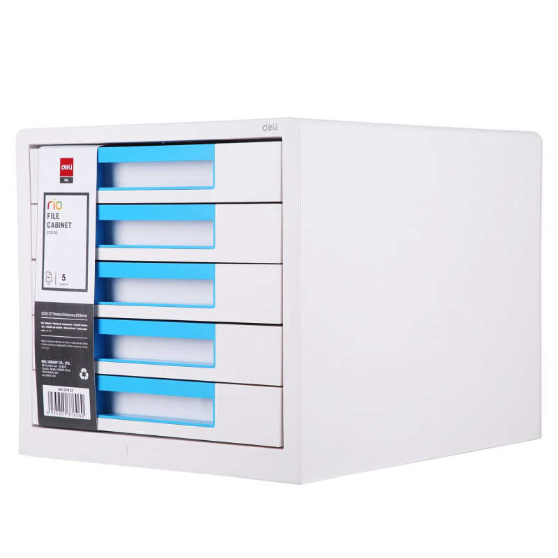 Бокс для документов Deli Rio белый/голубой, 5 выдвижных ящиков, 277х344х259мм, пластик