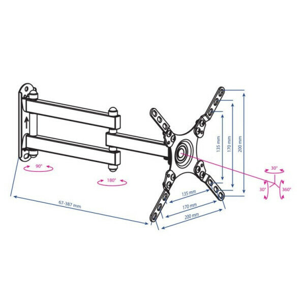Настенный кронштейн для телевизора KROMAX DIX-13 BLACK надёжно удержит экран размером 15-42 дюйма и весом 20 кг. Простая конструкция кронштейна идеально подойдет для самостоятельного монтажа. Наклонно-поворотная регулировка позволит наклонять вверх и вниз на ±15°, поворачивать влево и вправо на 180°, и выдвигать на 67-387 мм. Кронштейн подходит для большинства телевизоров популярных брендов, таких как Samsung, LG, Sony, Panasonic, Sharp, Toshiba, Яндекс, Sber, KIVI, Xiaomi Mi, TCL, SUPRA, Hyundai, Erisson, Horizont, JVC, Thomson, HAIER, BBK, Витязь, Веко, BQ, OZON, SkyLine, Pioneer, Philips, Rolsen, Harper, Hisense, Hitachi, Polarline, Prestigio и других. Крепёжные отверстия изготовлены по стандарту VESA. В комплектацию входят необходимые для монтажа материалы. Вся продукция обеспечивается гарантийными обязательствами. Пожизненная гарантия на все сварные и механические соединения позволит наслаждаться конструкцией долгий срок. Во время эксплуатации кронштейн KROMAX DIX-13 BLACK демонстрирует поразительную износостойкость и безотказность.