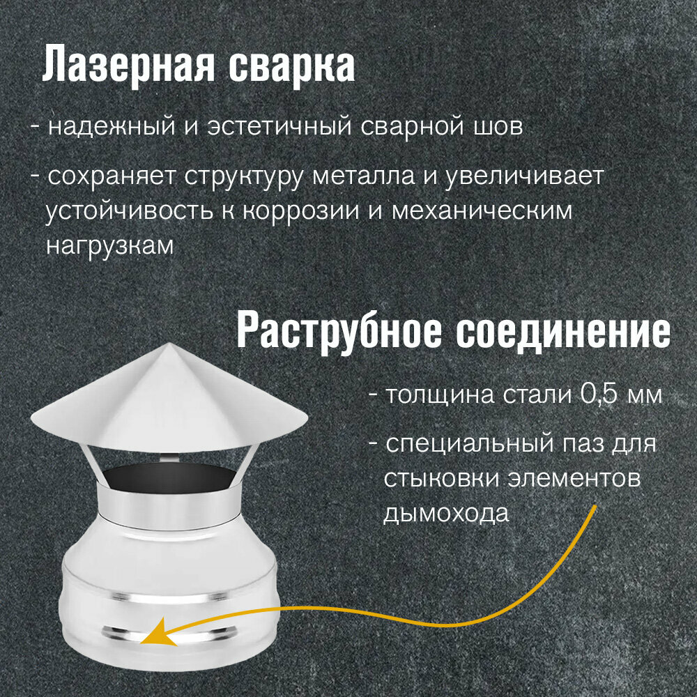 Оголовок применяется для защиты двухконтурного дымохода от попадания атмосферных осадков.